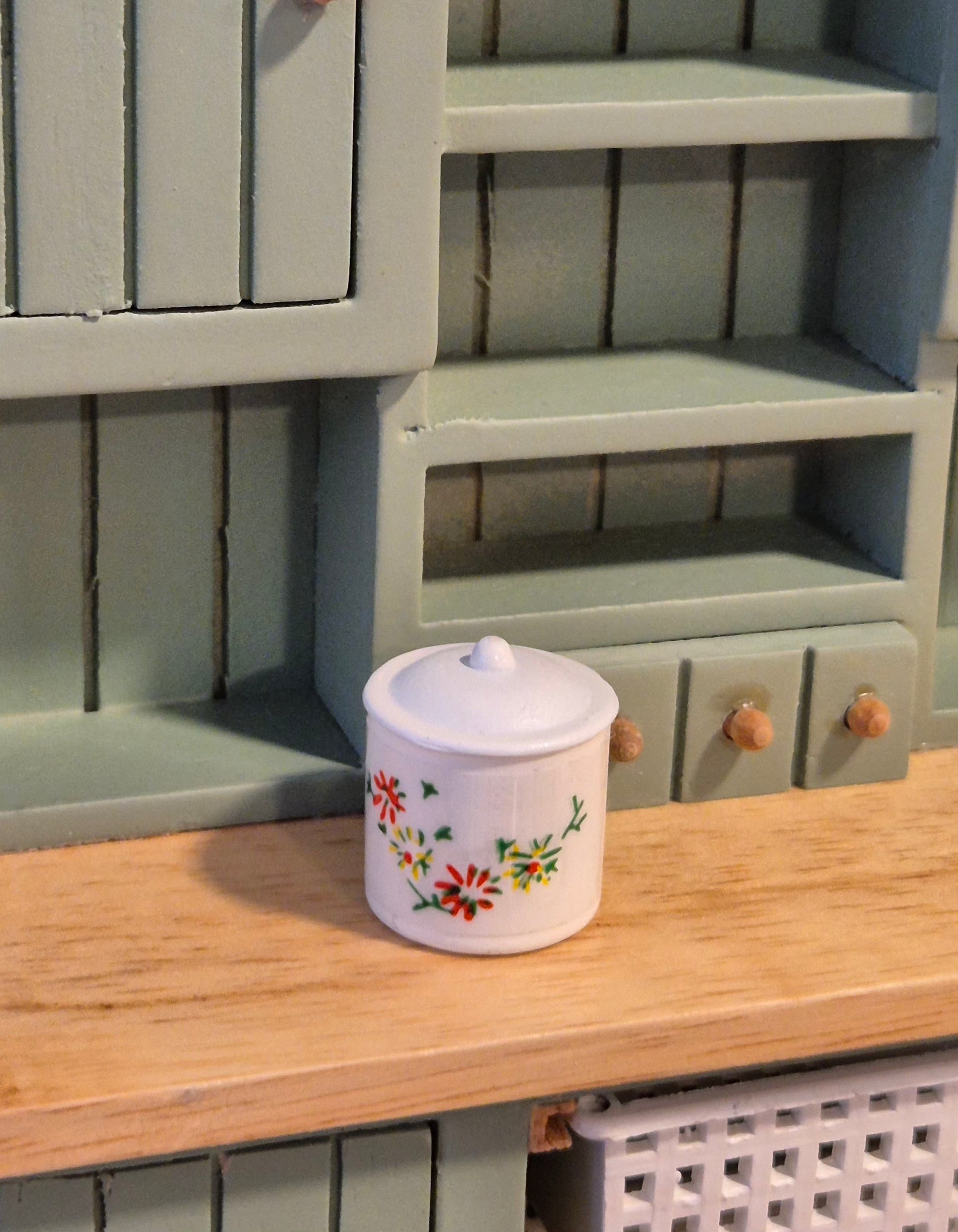 Pæn hvid metal dåse / kagedåse med aftageligt låg i blomstermotiv.