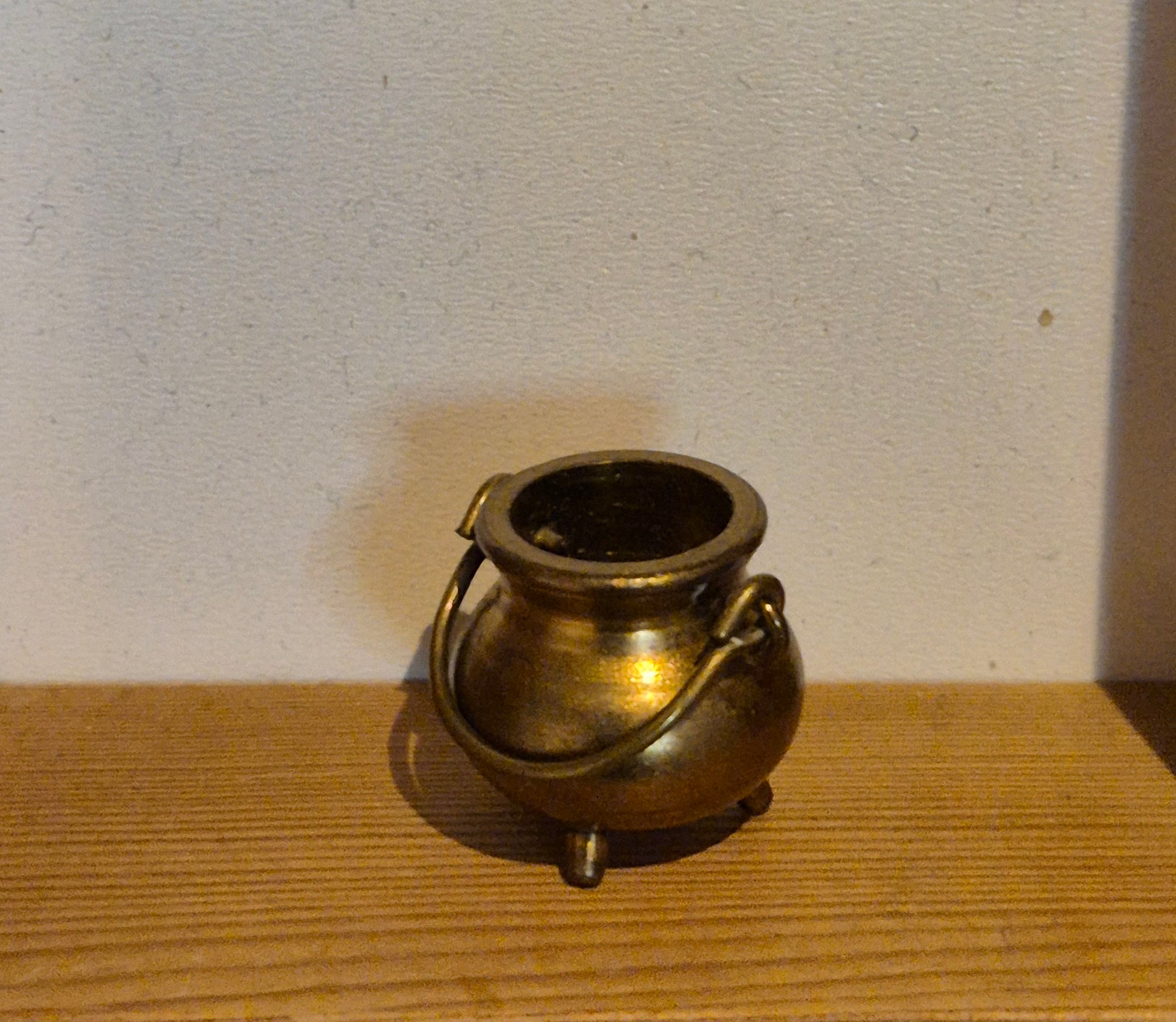 Metal kedel i miniature format. Den er tung og af messing. Den er str 1:10 - 1:12.