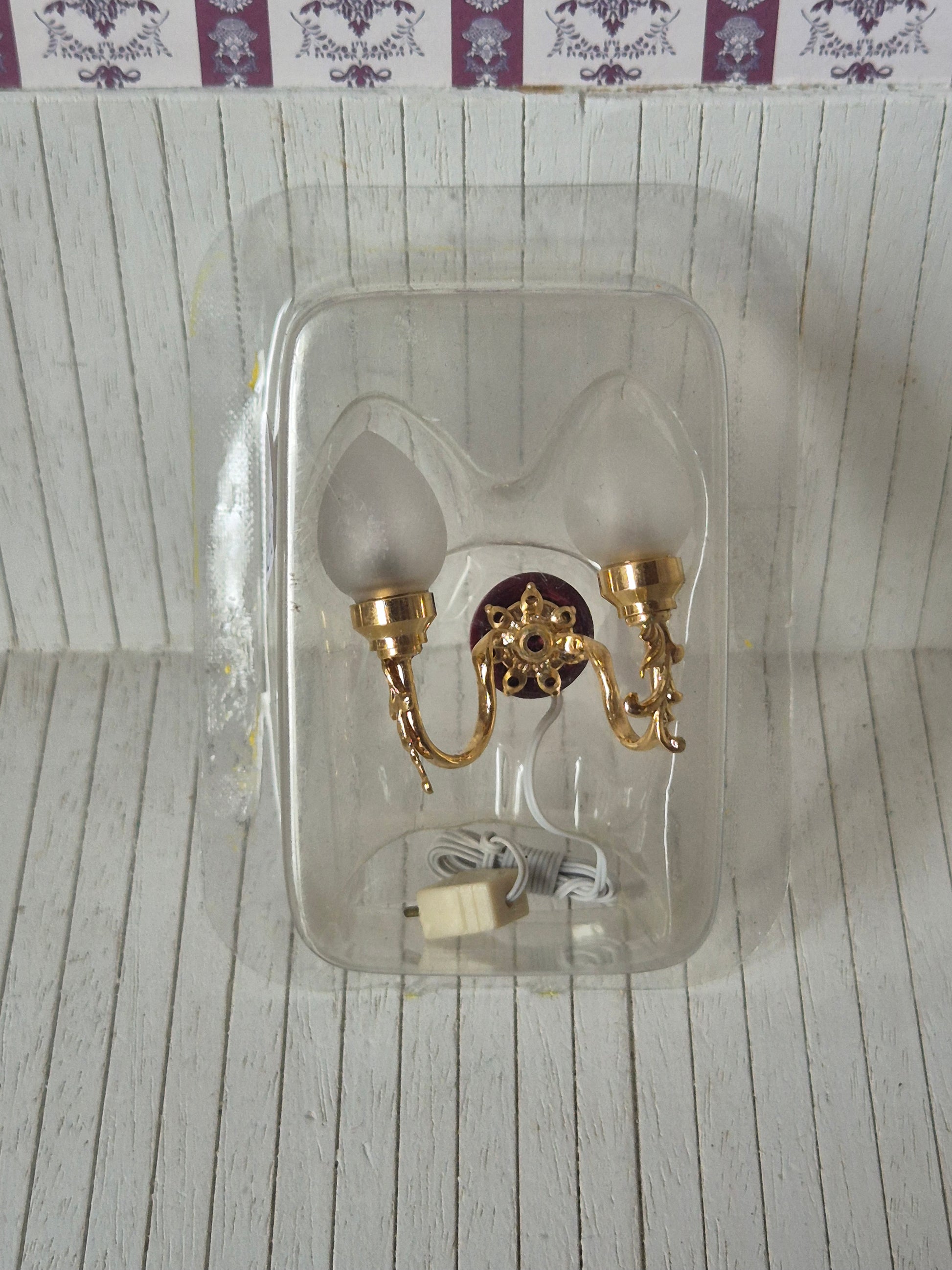 Pæn 1:12 lampe med 2 arme til ophæng på væg i dukkehus.