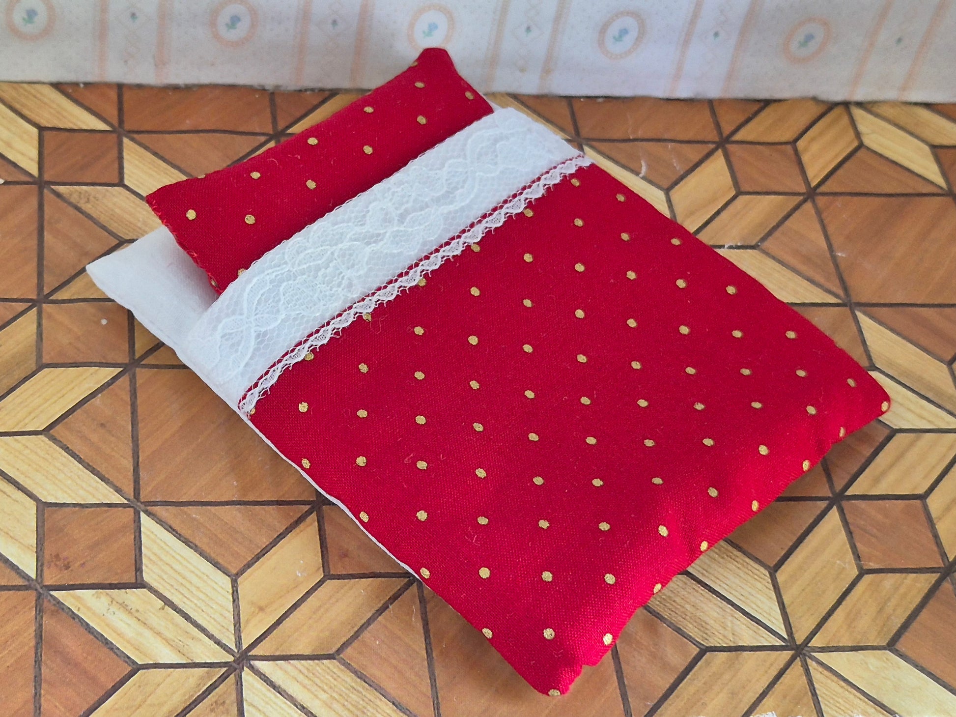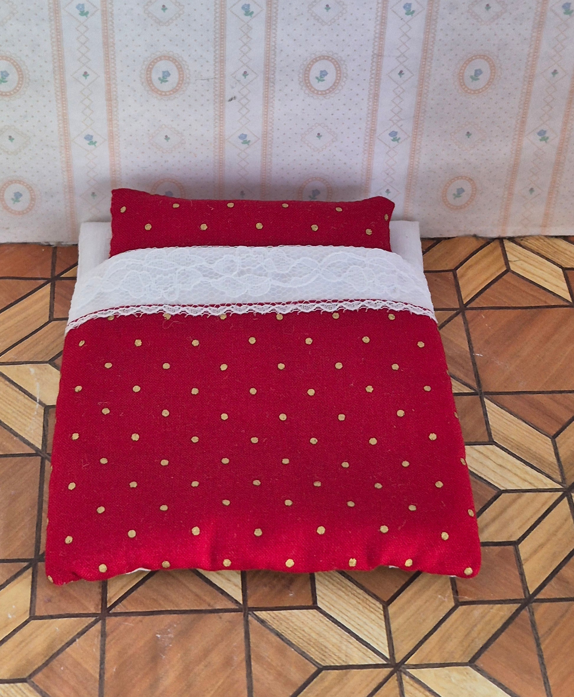Pænt nyt 1:16 sengesæt med madras, dyne og pude i ét. Passer til lundby dobbeltseng
