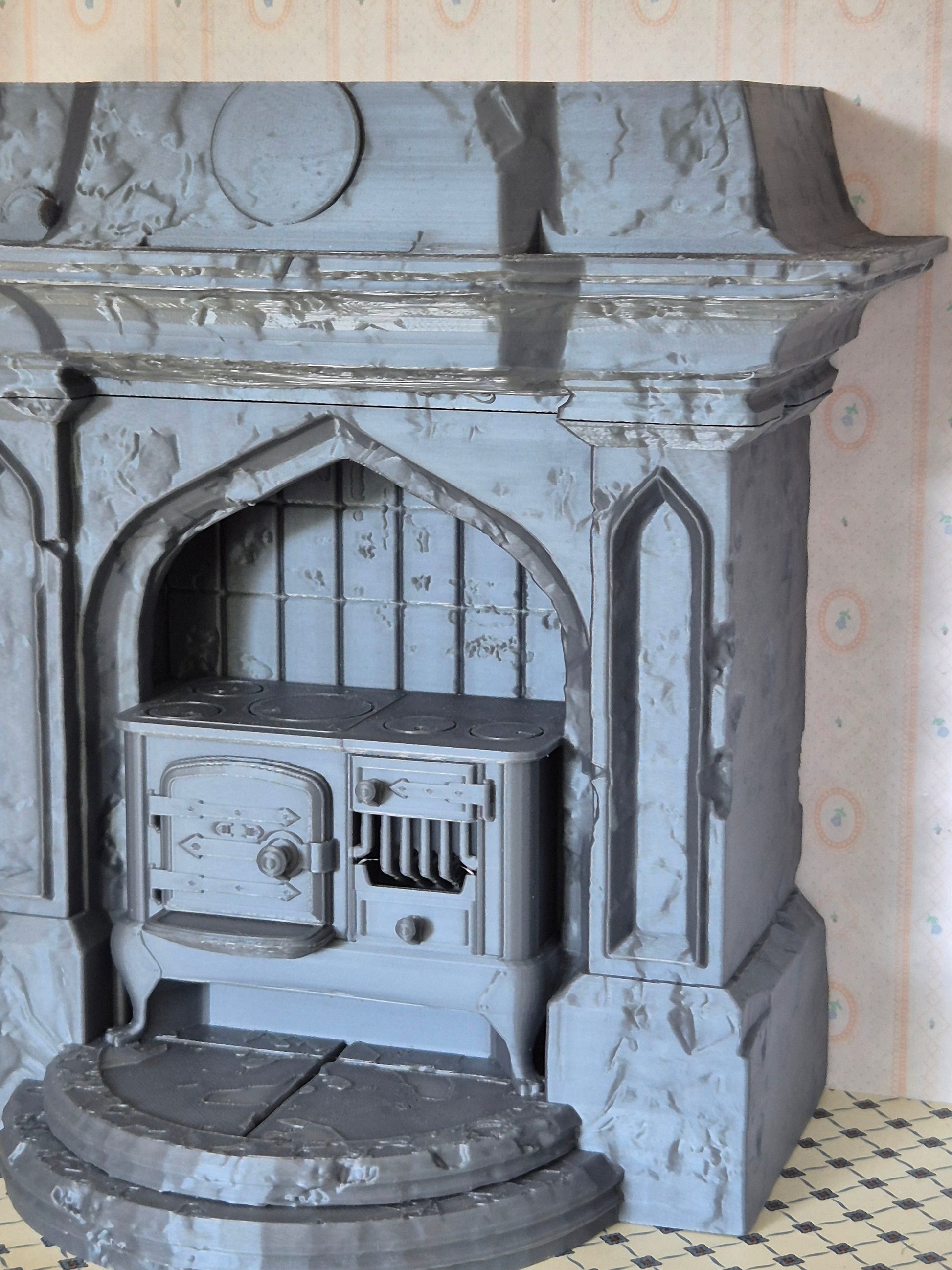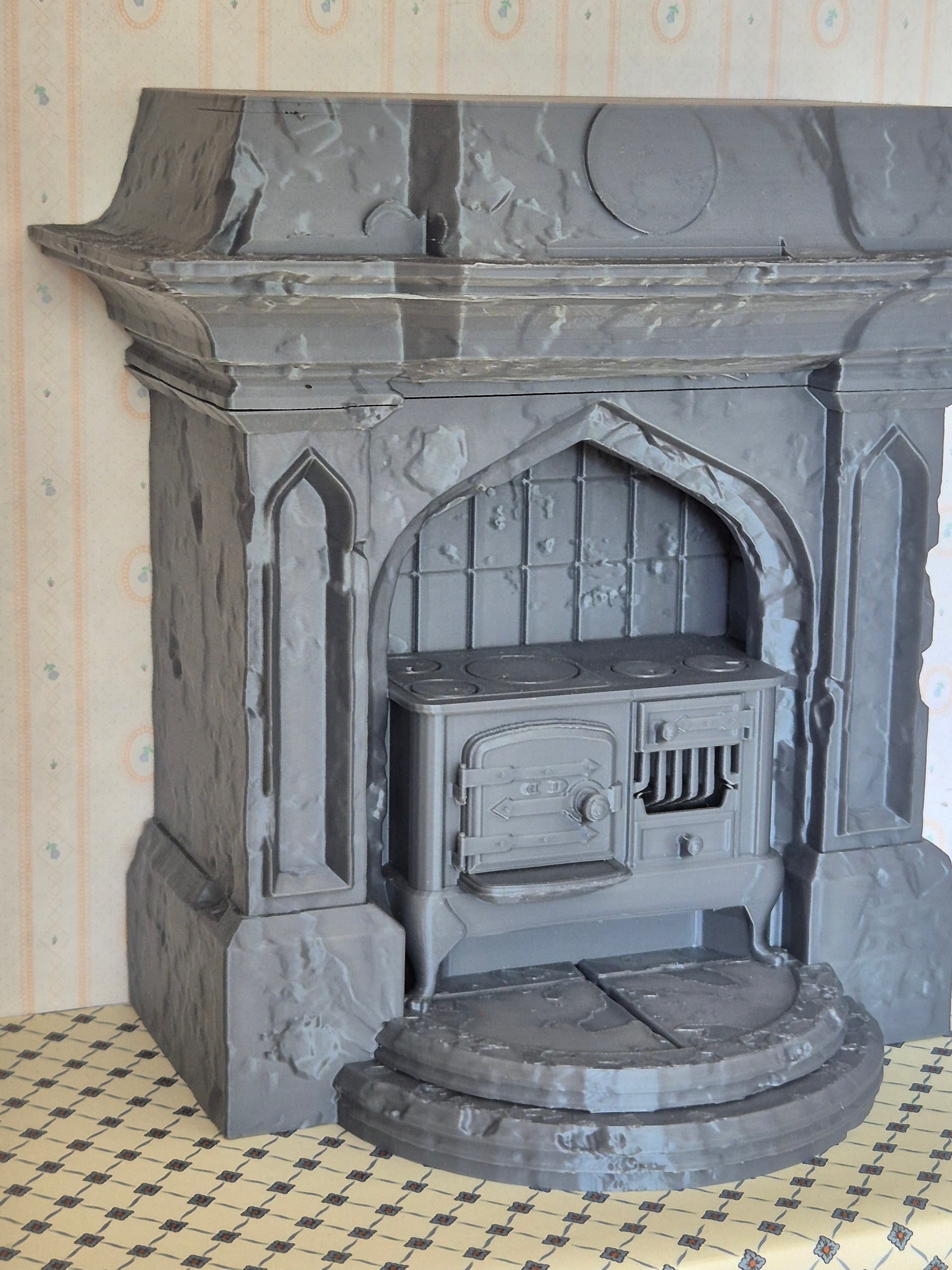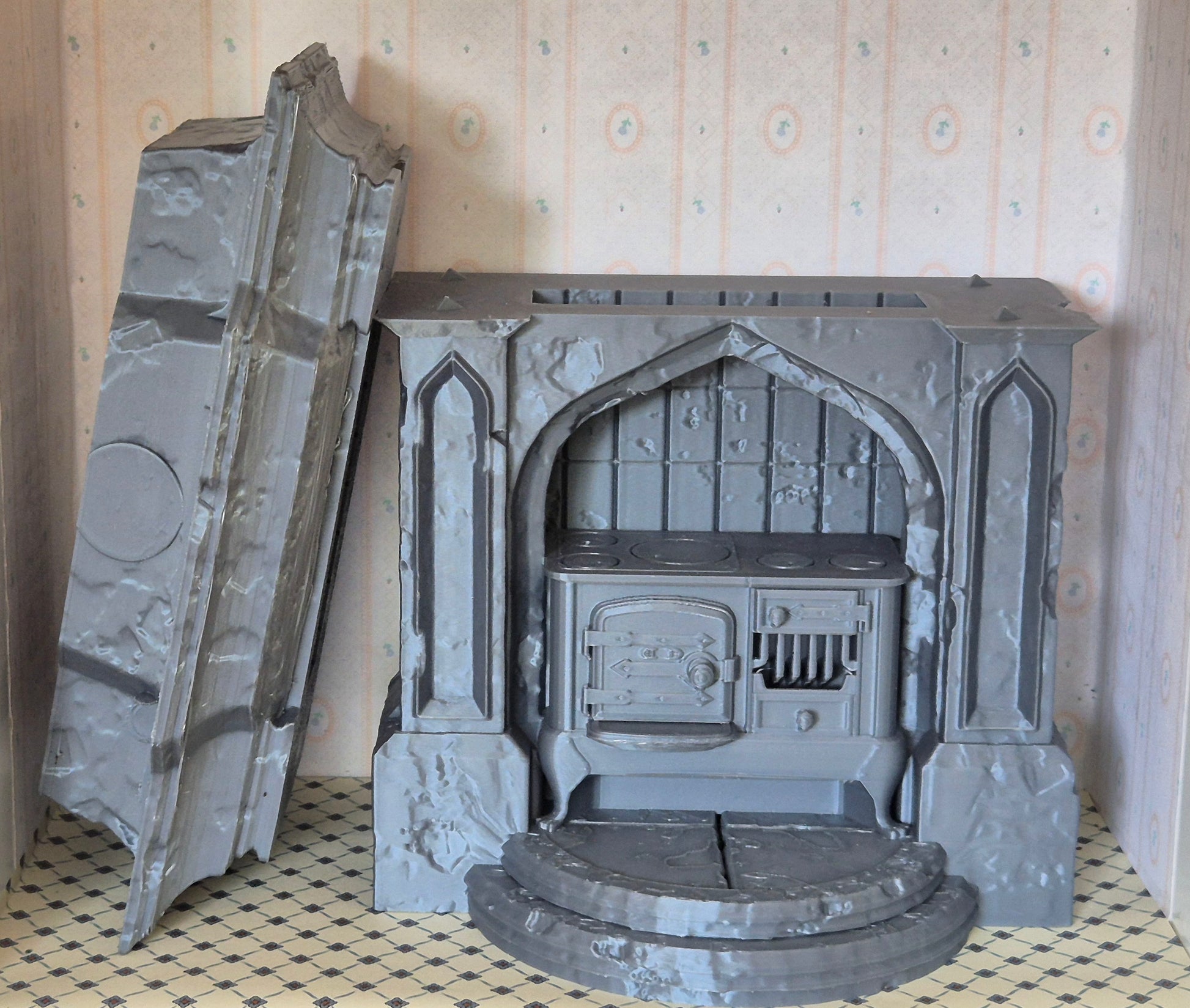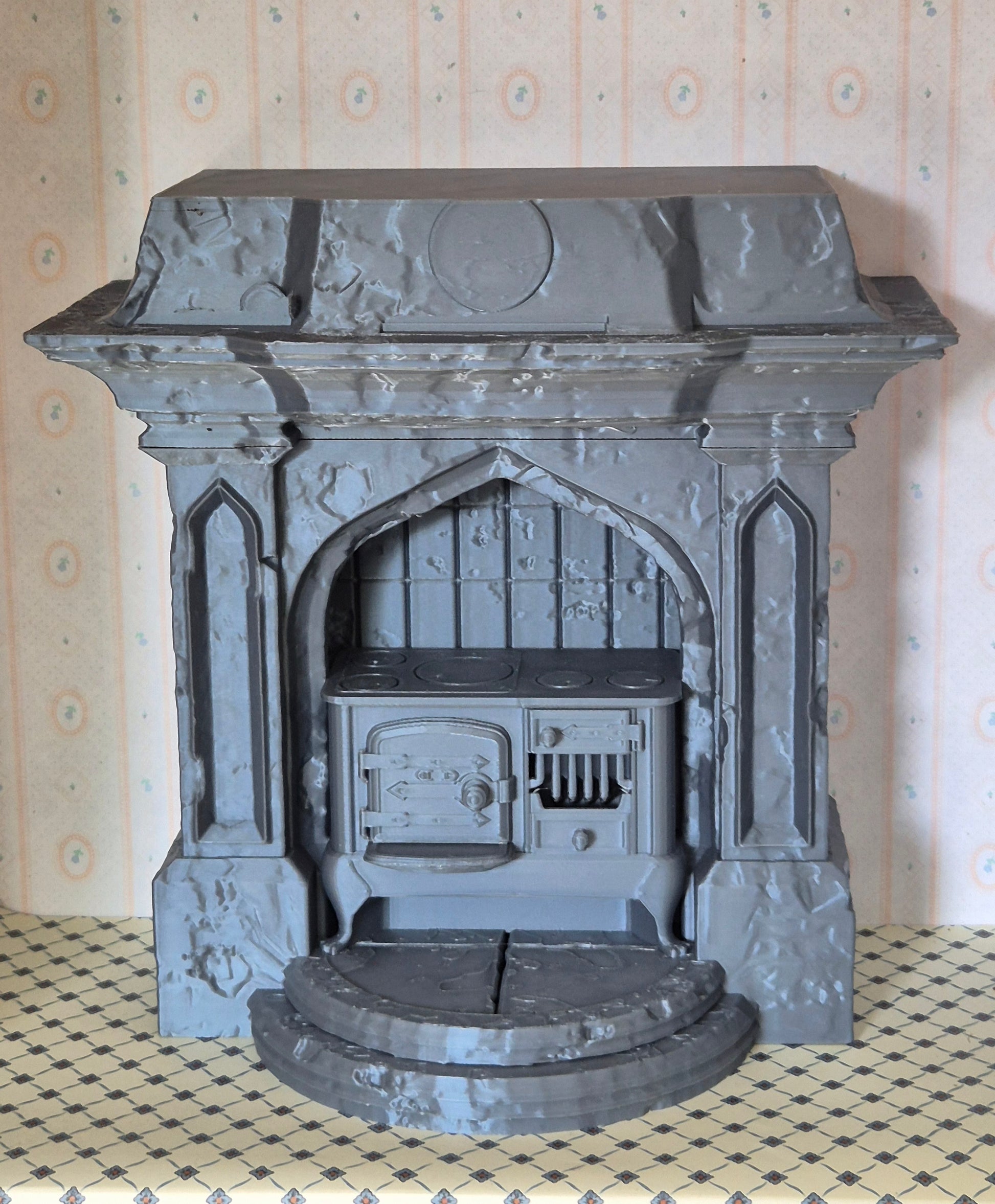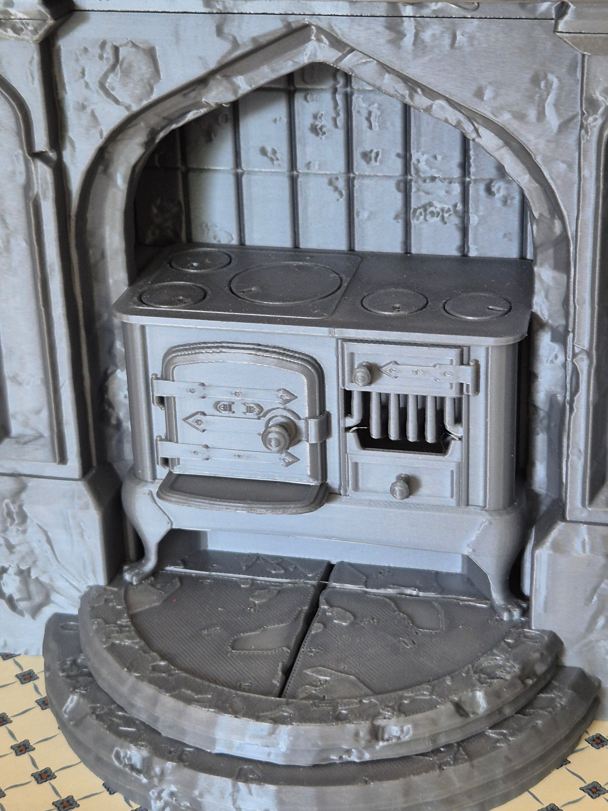 Pæn køkken enhed, stort komfur / ildsted i 1:12, der er 3D printet. Nyt og ubrugt.