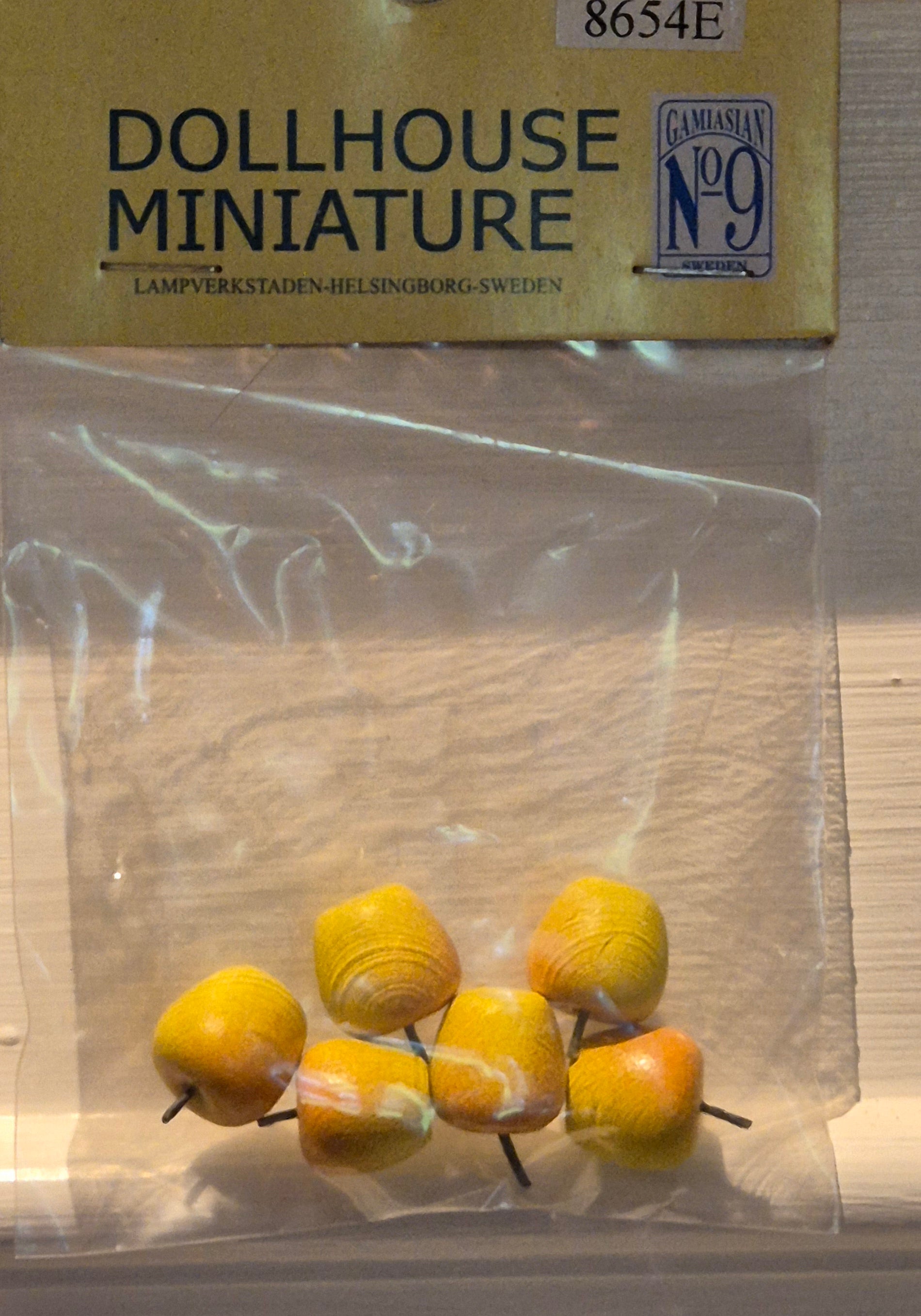 Pose med æbler. De burde passe til str 1:12, men er ret store i dét. Så det er nok mere 1:10.