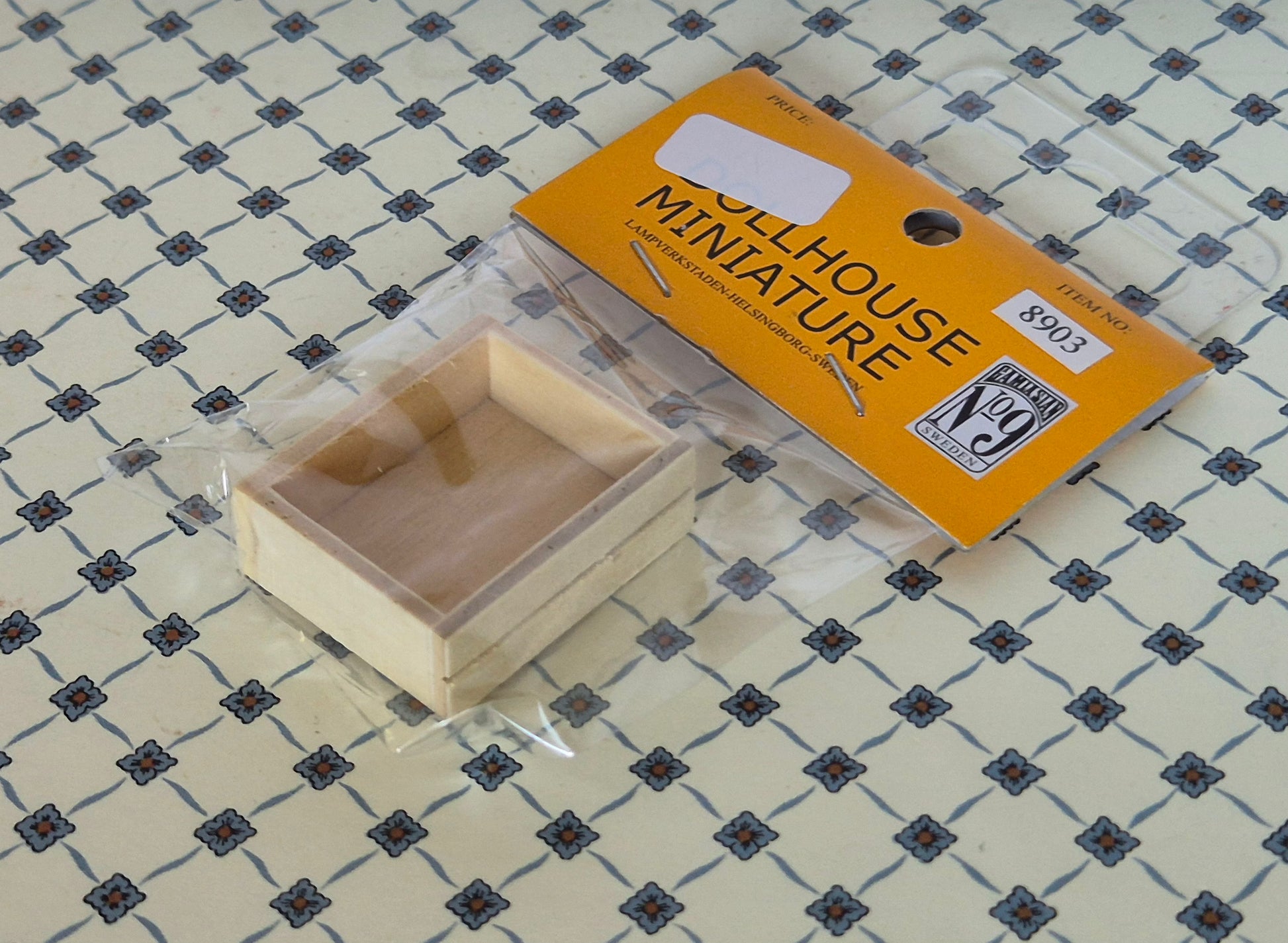 God ny kasse af lyst træ. Den er ca 3 cm.