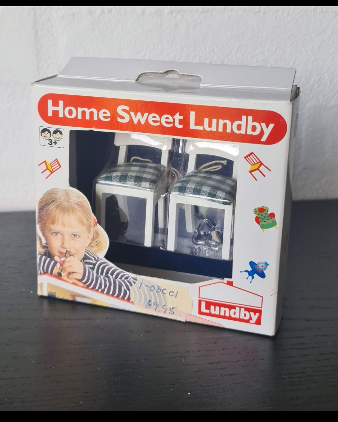 Ny æske Lundby stole. Pæn stand. Ældre dukkehus stole i uåbnet emballage
