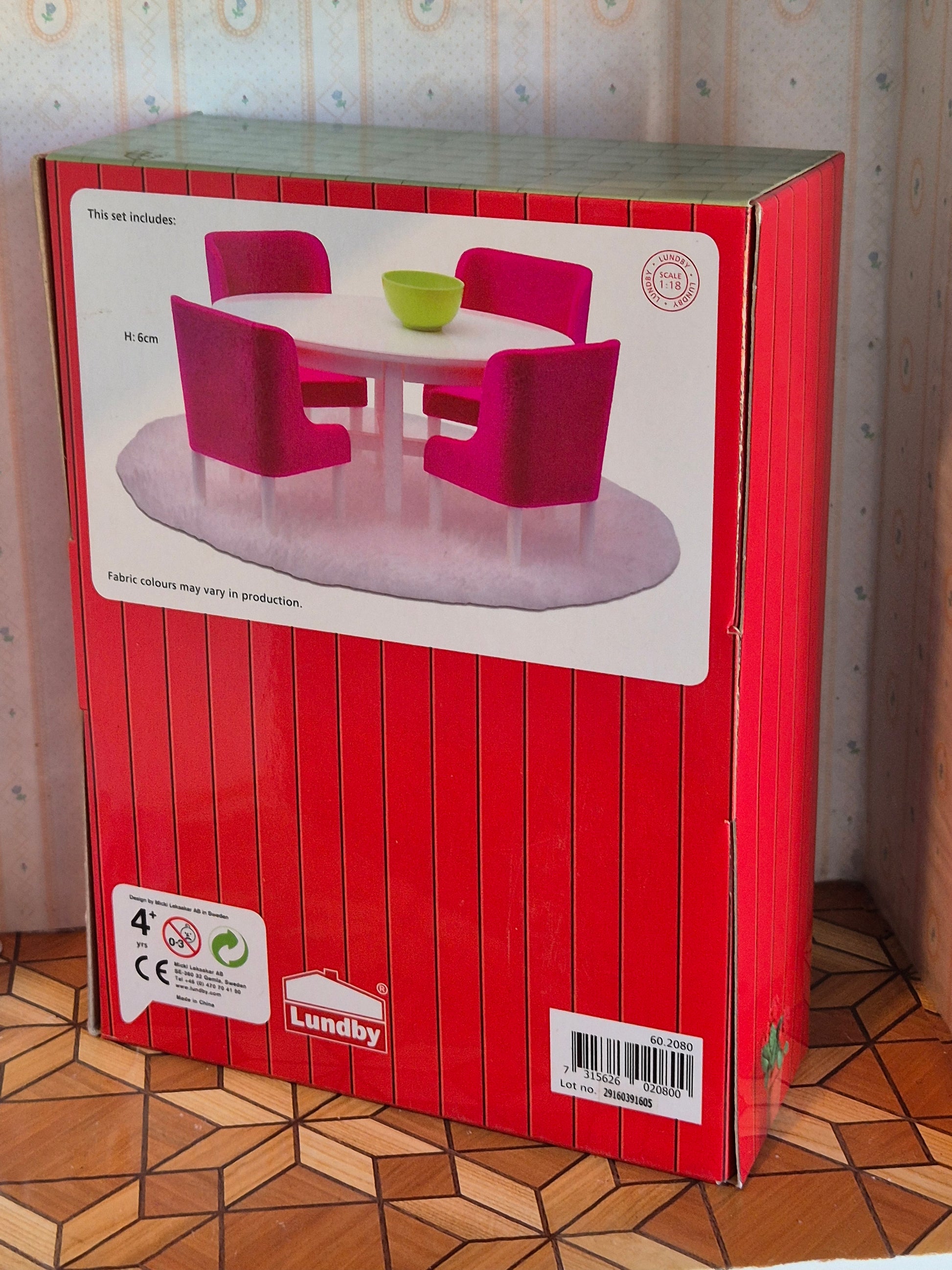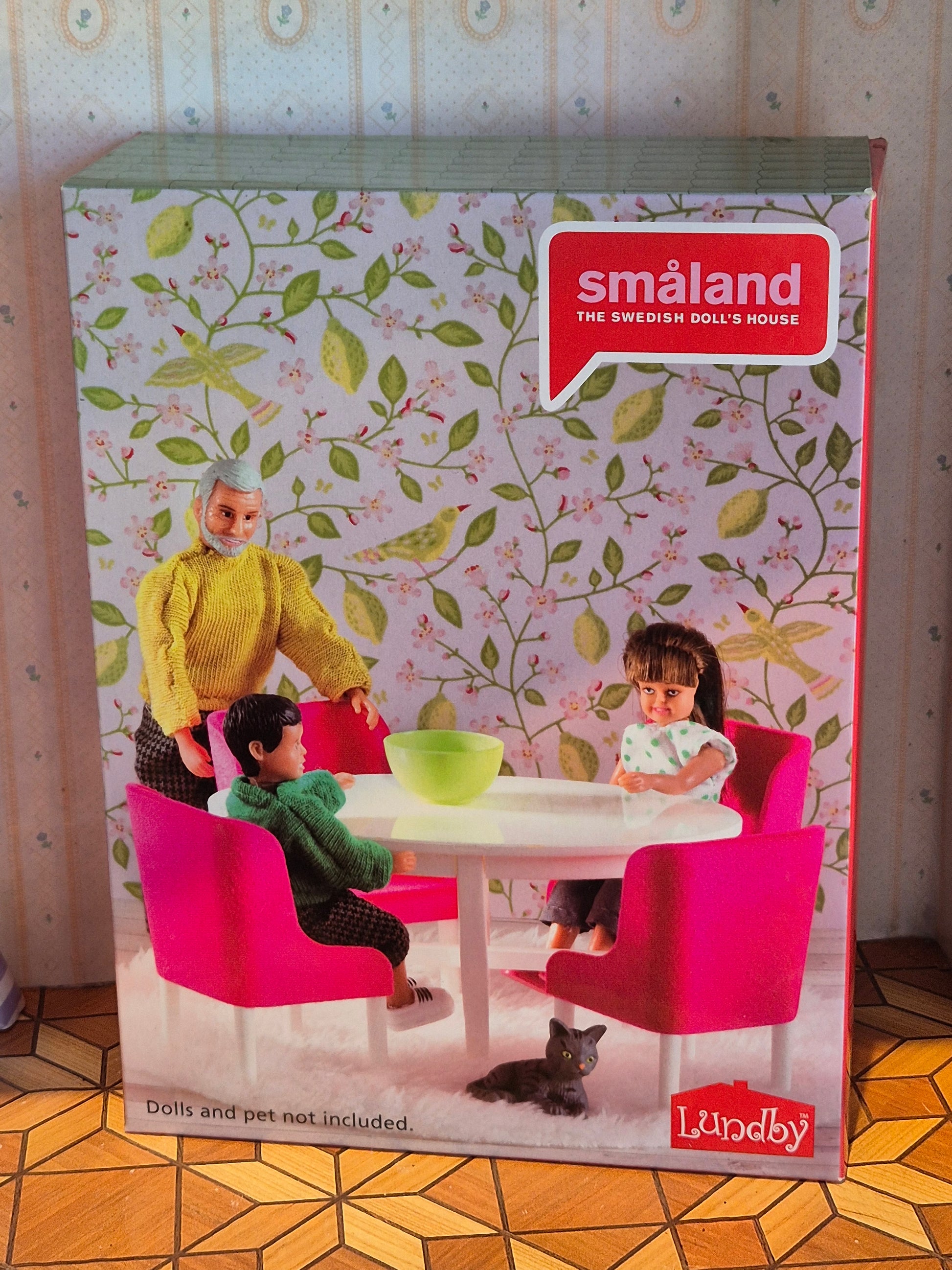 Ny æske Lundby dukkehusmøbler, bord og stole. Pæn og uåbnet emballage