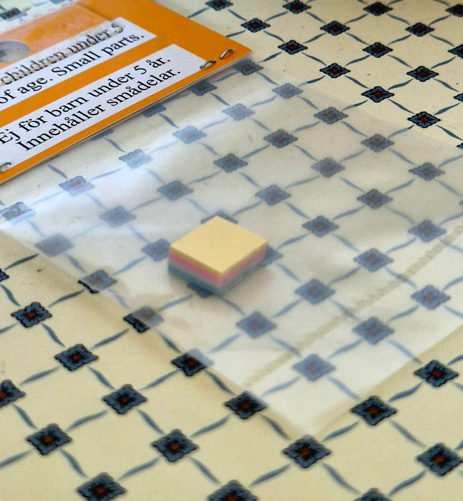 Pæn fin post-it blok. Den passer bedst til 1:12.