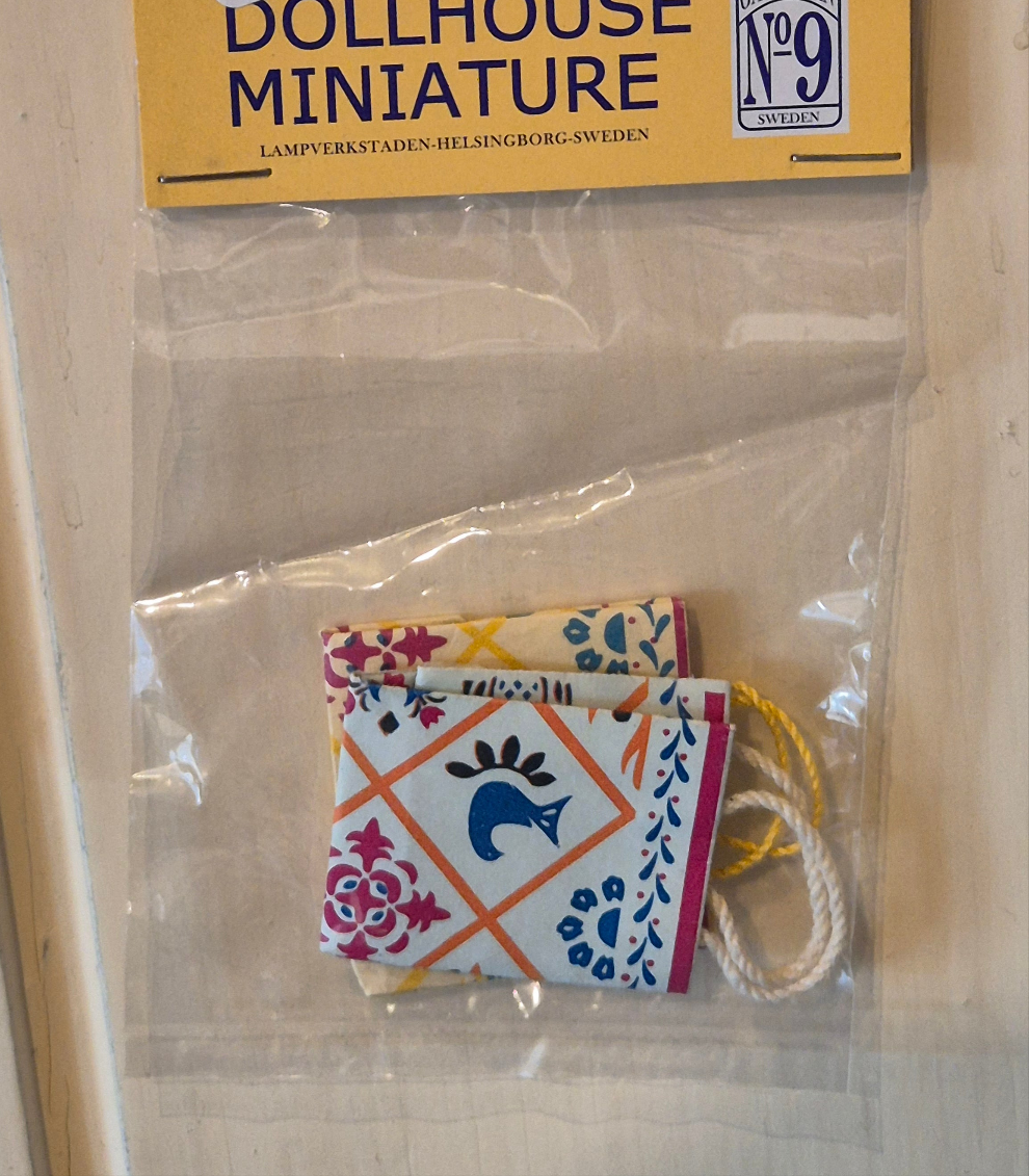 Nye pæne papirsposer i 1:12. Der er en gul og en blå