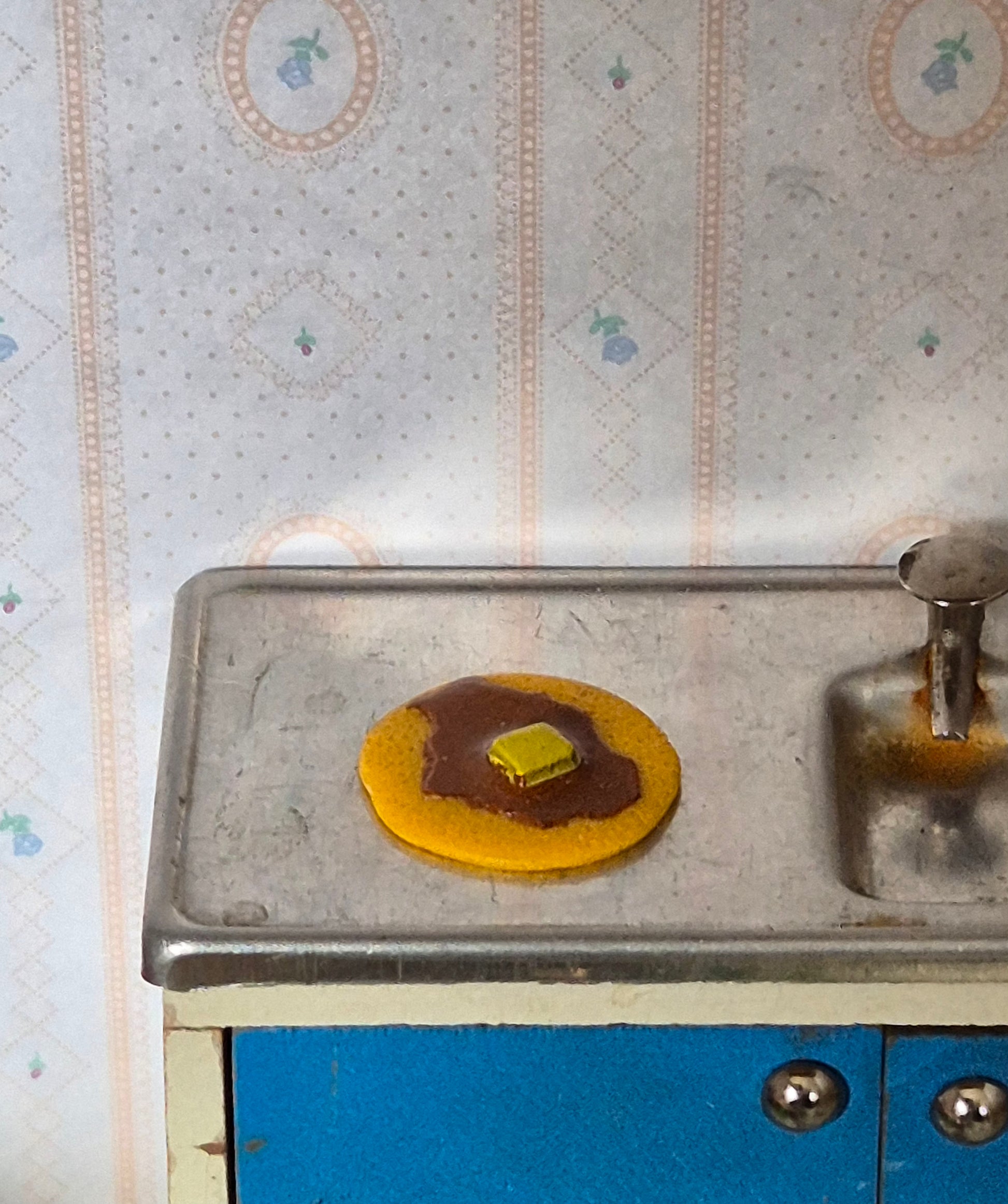 Pandekage med ahornsirup og smør. Den er af plast. Passer bedst til 1:12