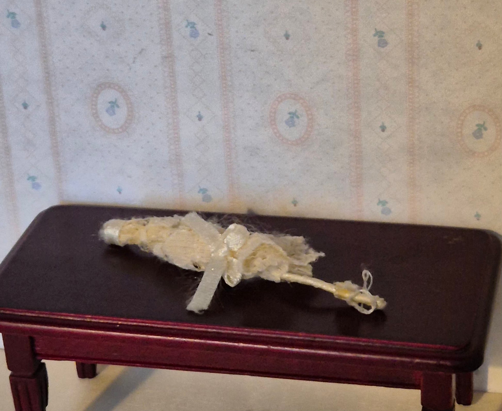 Paraply i hvid. Lidt nusset. Patina. Passer bedst til 1:12 - 1:14