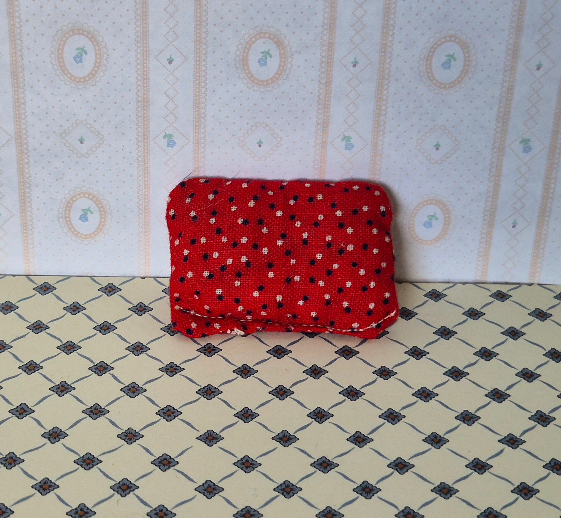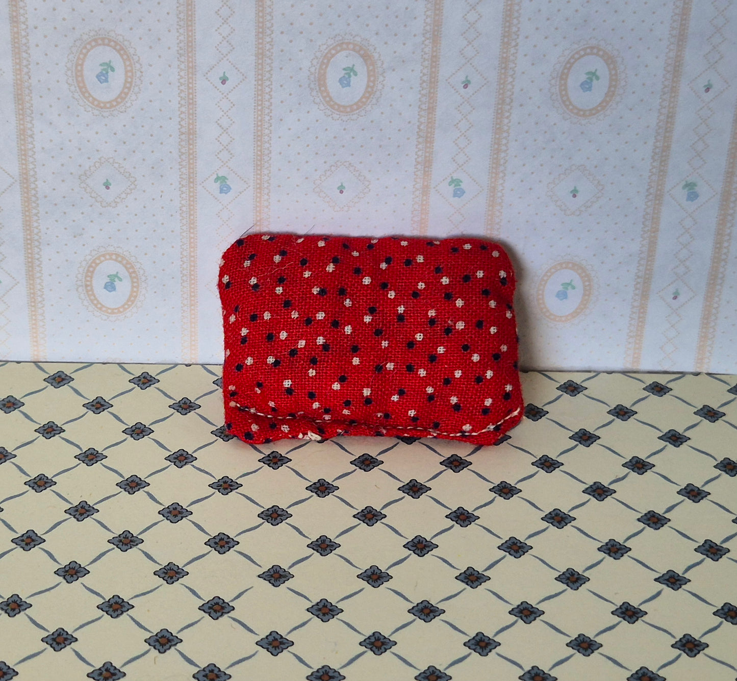 Hjemmelavet pude. 5,3 x 3,5 cm.