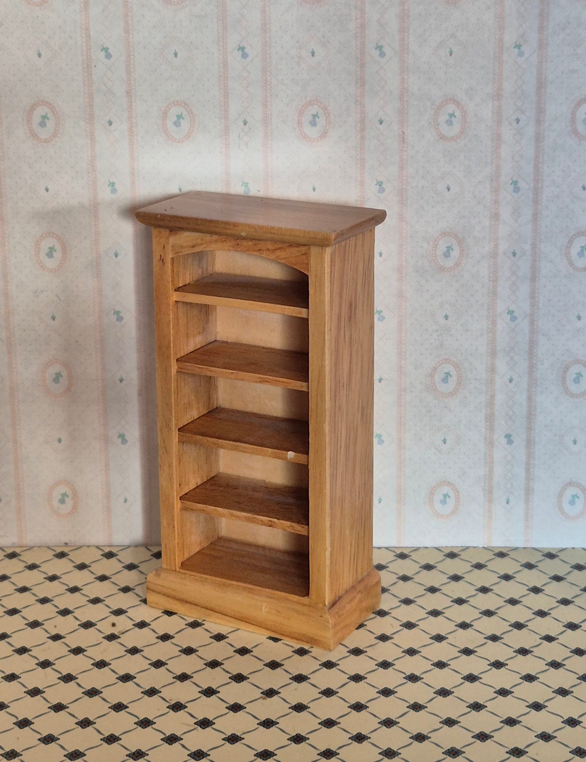 Pæn reol str 1:14 - 1:12. Den er i lyst træ. Ca 12 cm højt.