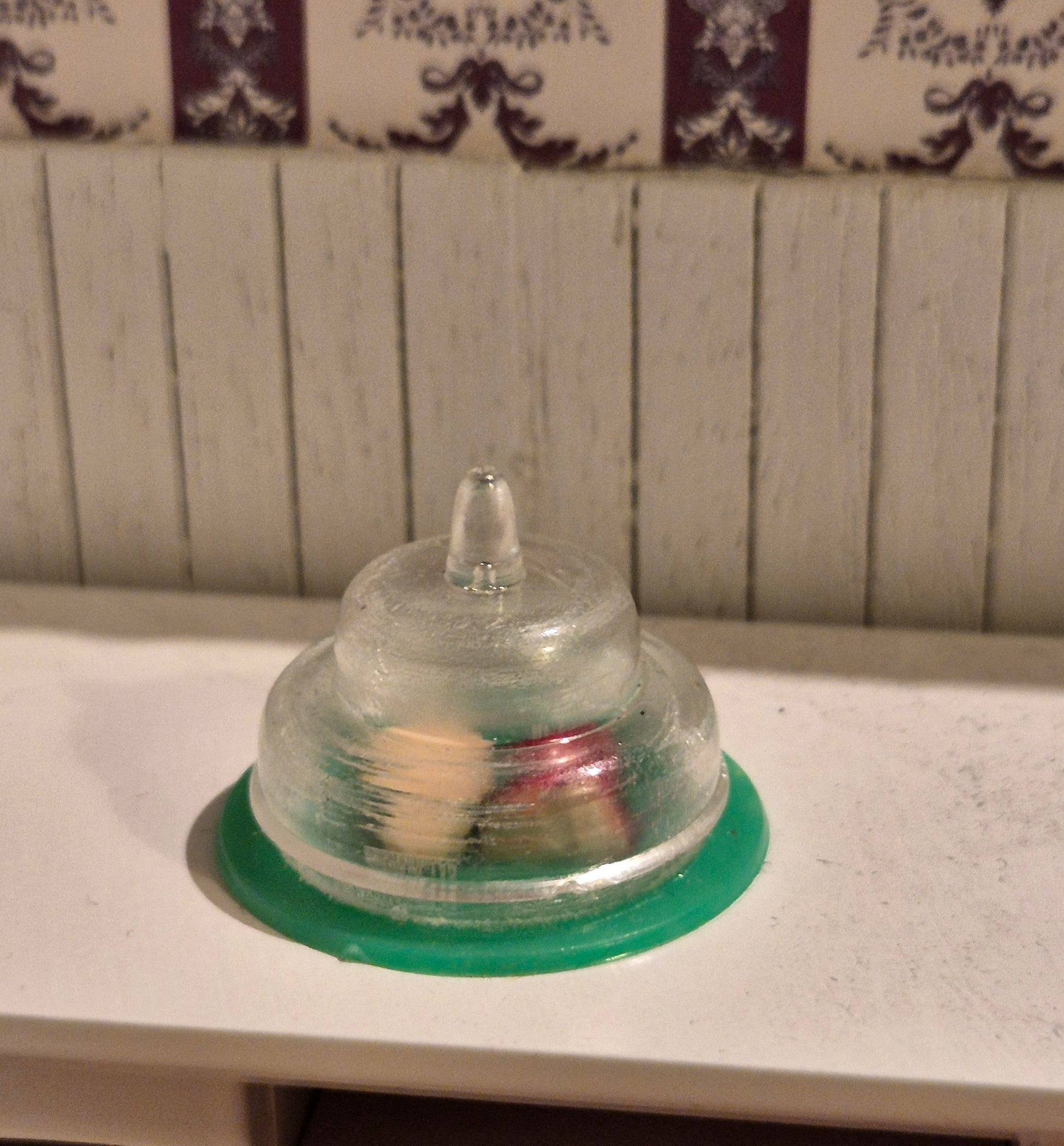 Retro køkken tilbehør til dukkehuset. Matteret låg med grøn bund. Pæn og i god stand. Det er tysk design, af plastik.