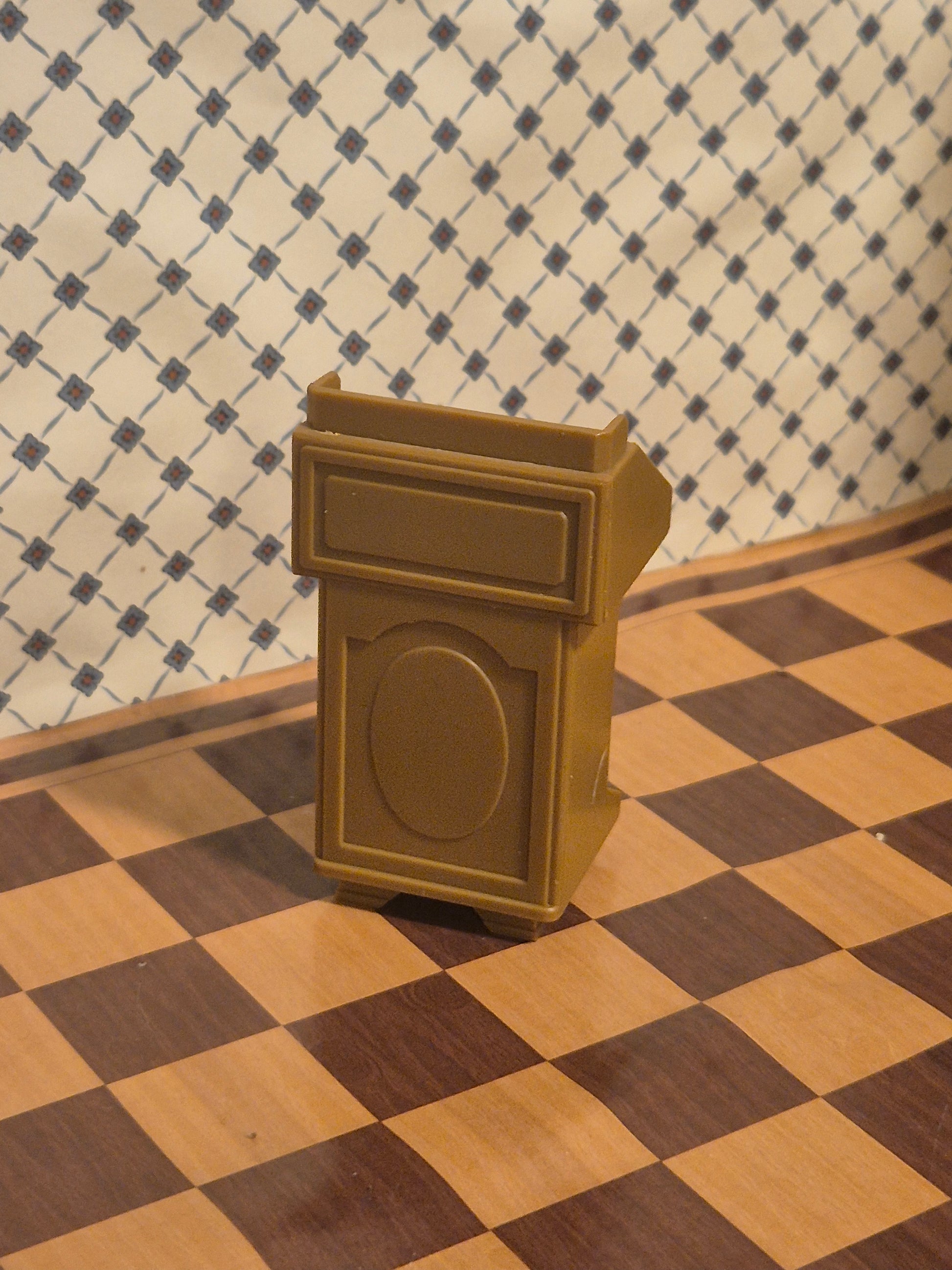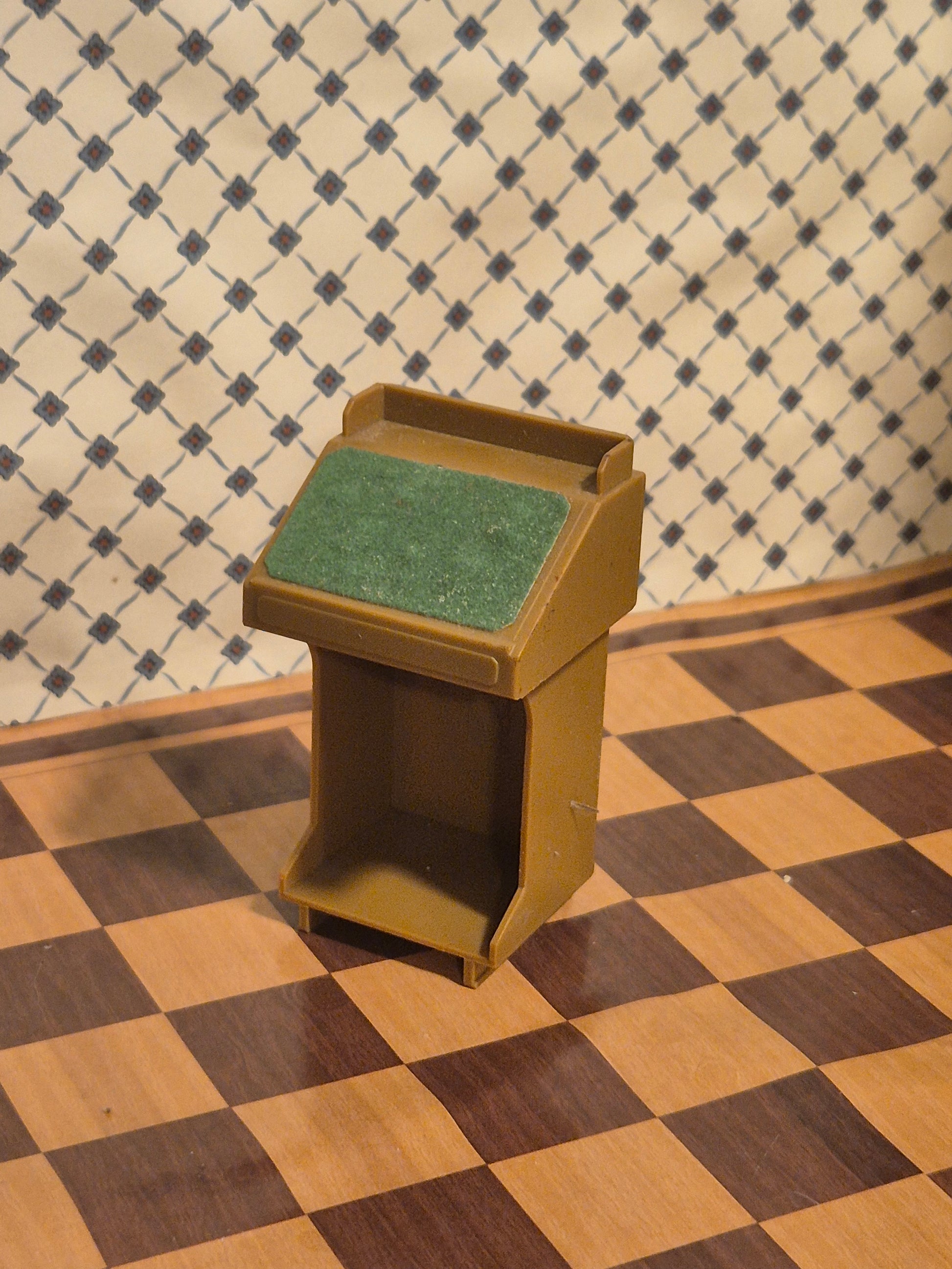 Retro brun skrivepult i 1:18. Udmærket stand. Mærket Jean West Germany.