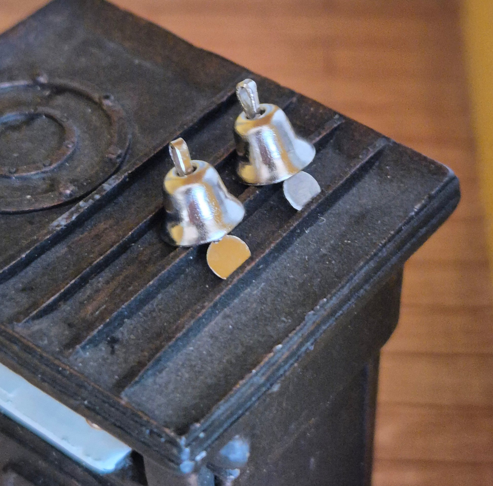 Tilbehør til dukkehuset fx ringklokke til tjenestefolket, klokke til butikslokalet eller bruges til jul fx pynt til juletræet, juledekoration, julepynt eller til seletøjet til rensdyret.