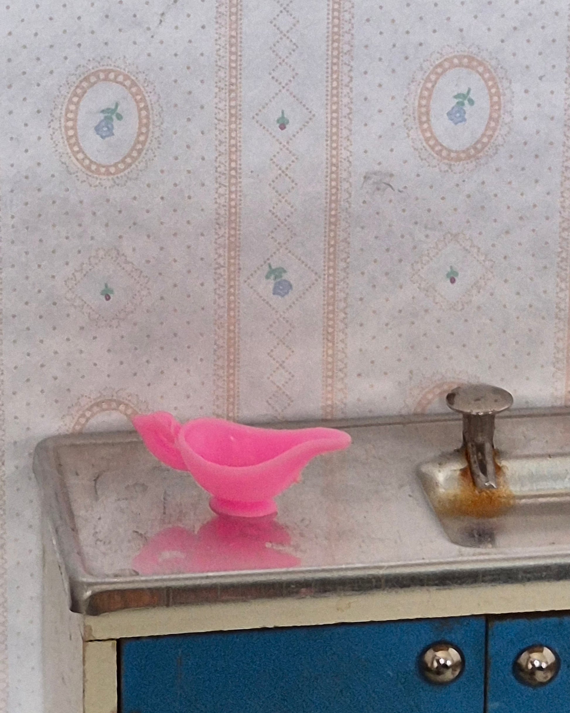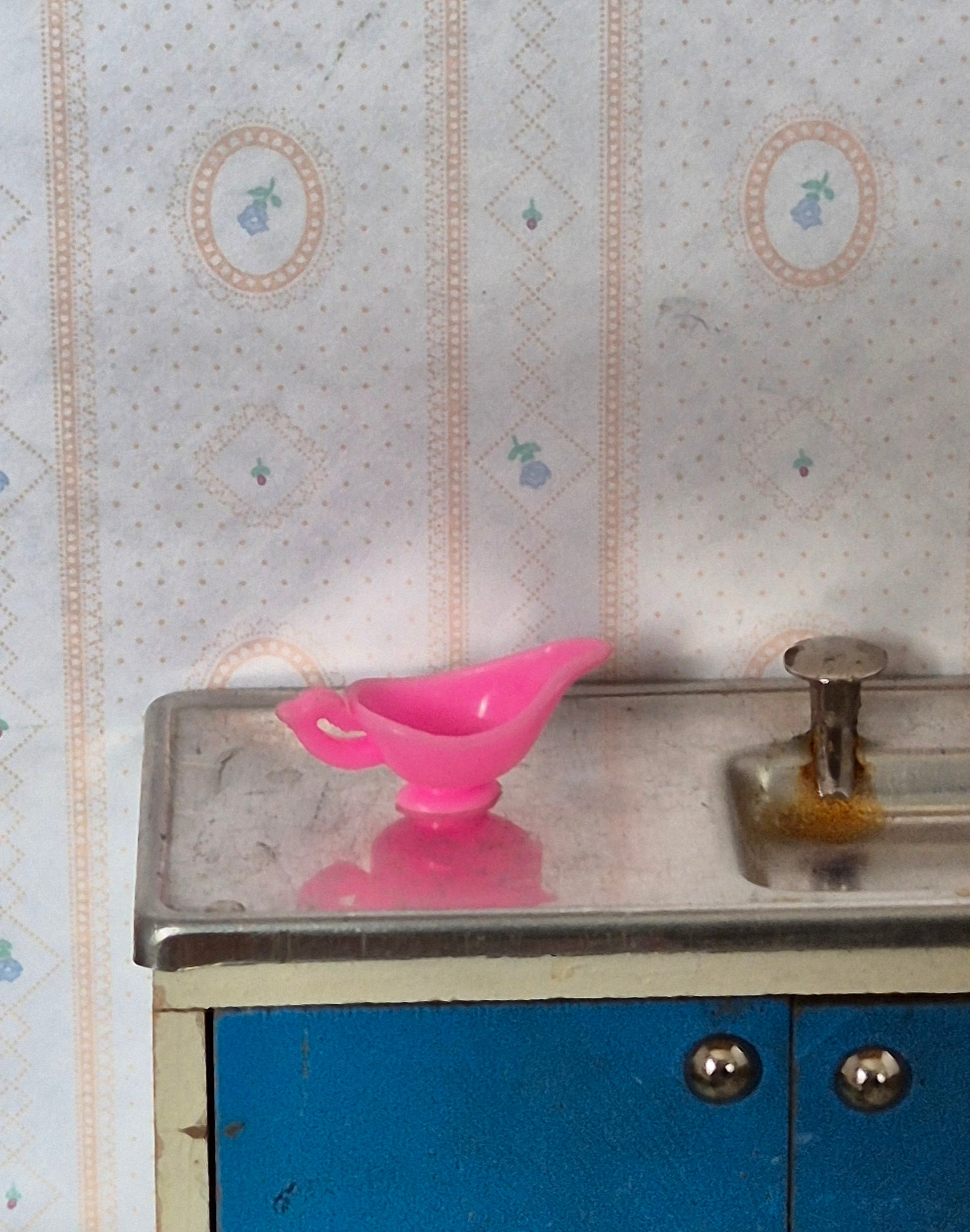 Pink plastik sauceskål. Passer fint til 1:12 - 1:16