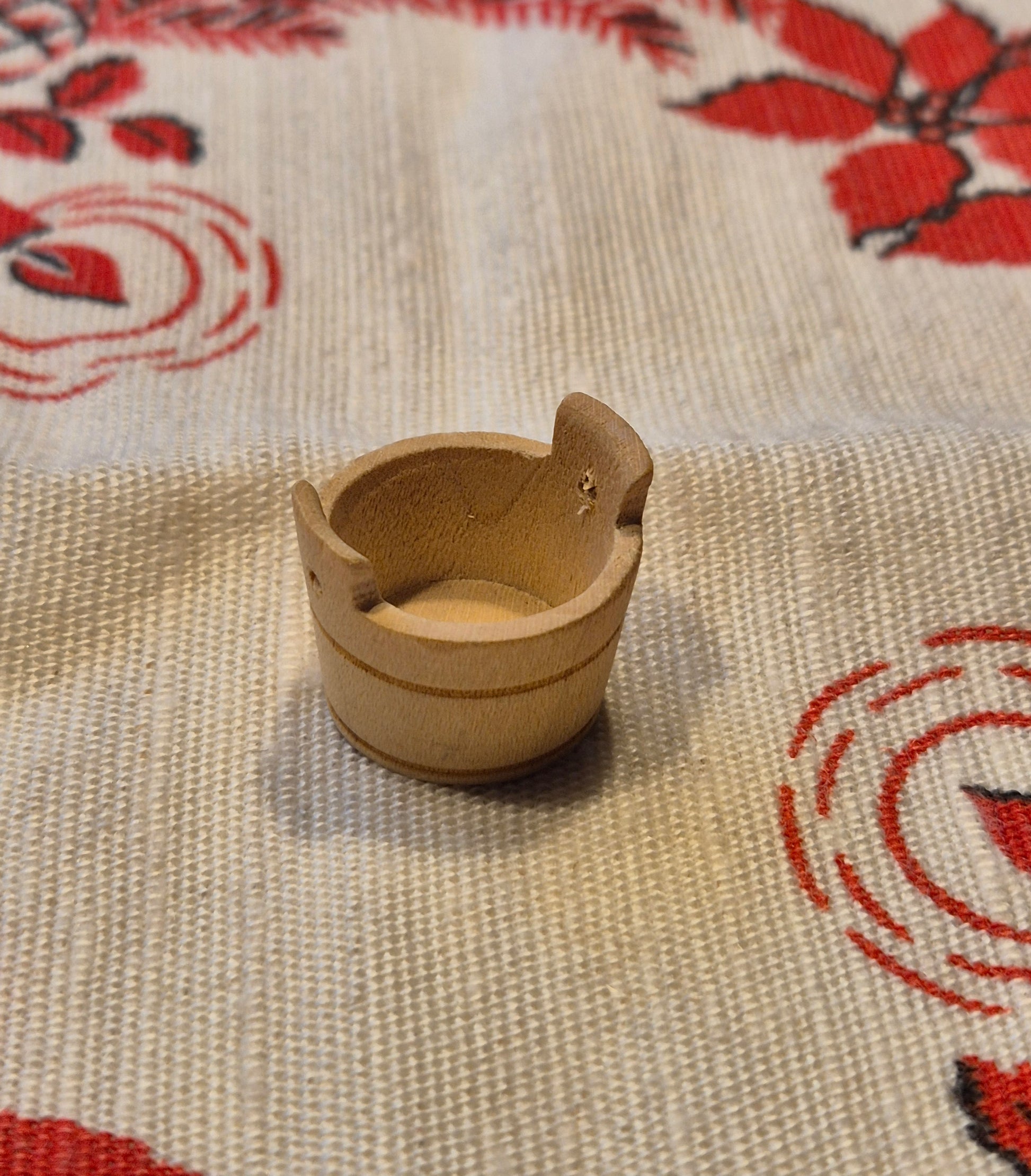 Mindre spand af træ til dukkehuset eller nissehus til jul. Den er i god stand og er pæn.