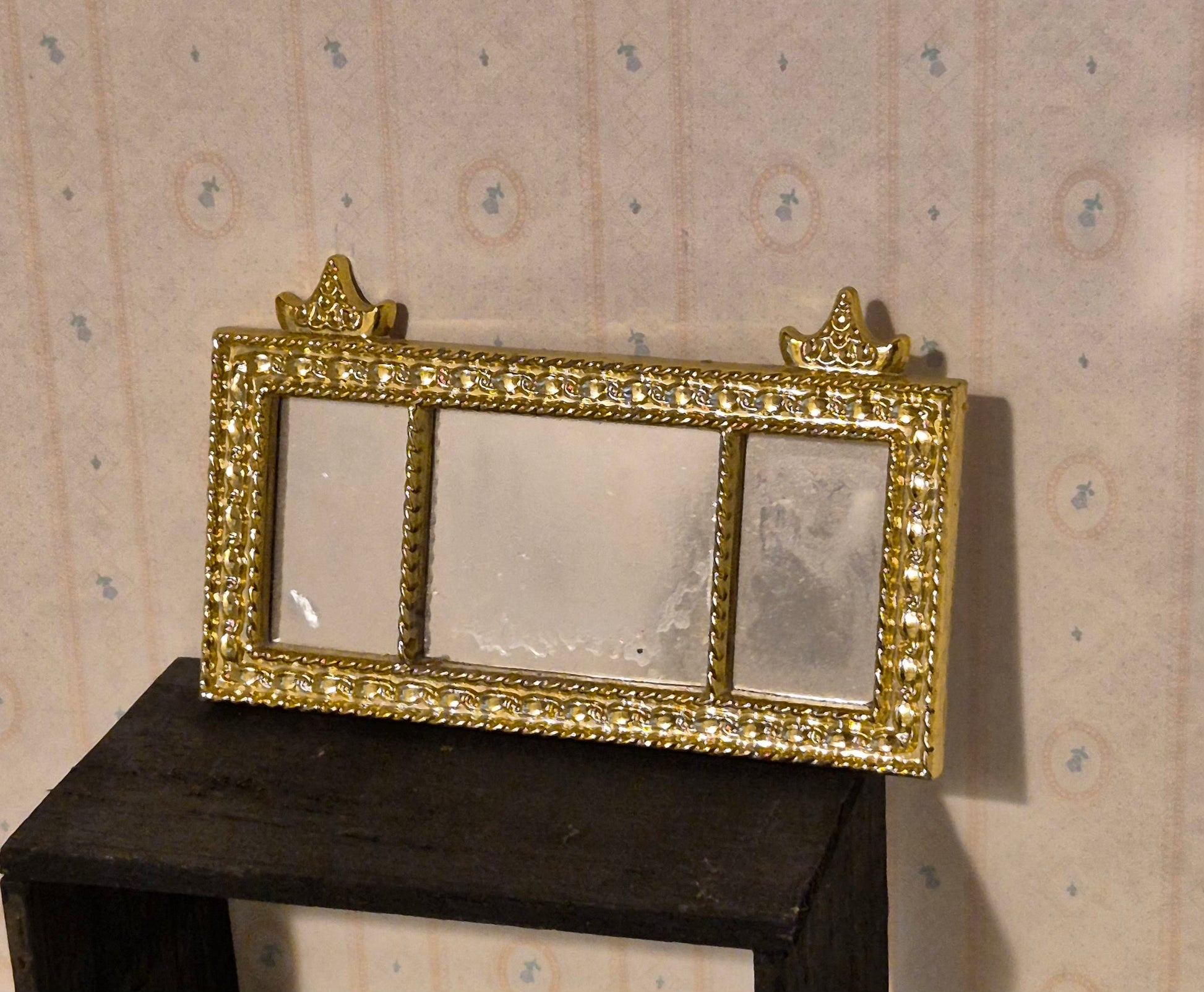 Kan bruges til de fleste dukkehus størrelser, da spejle kan fås i forskellige størrelser. Ca 9 centimeter bred.
