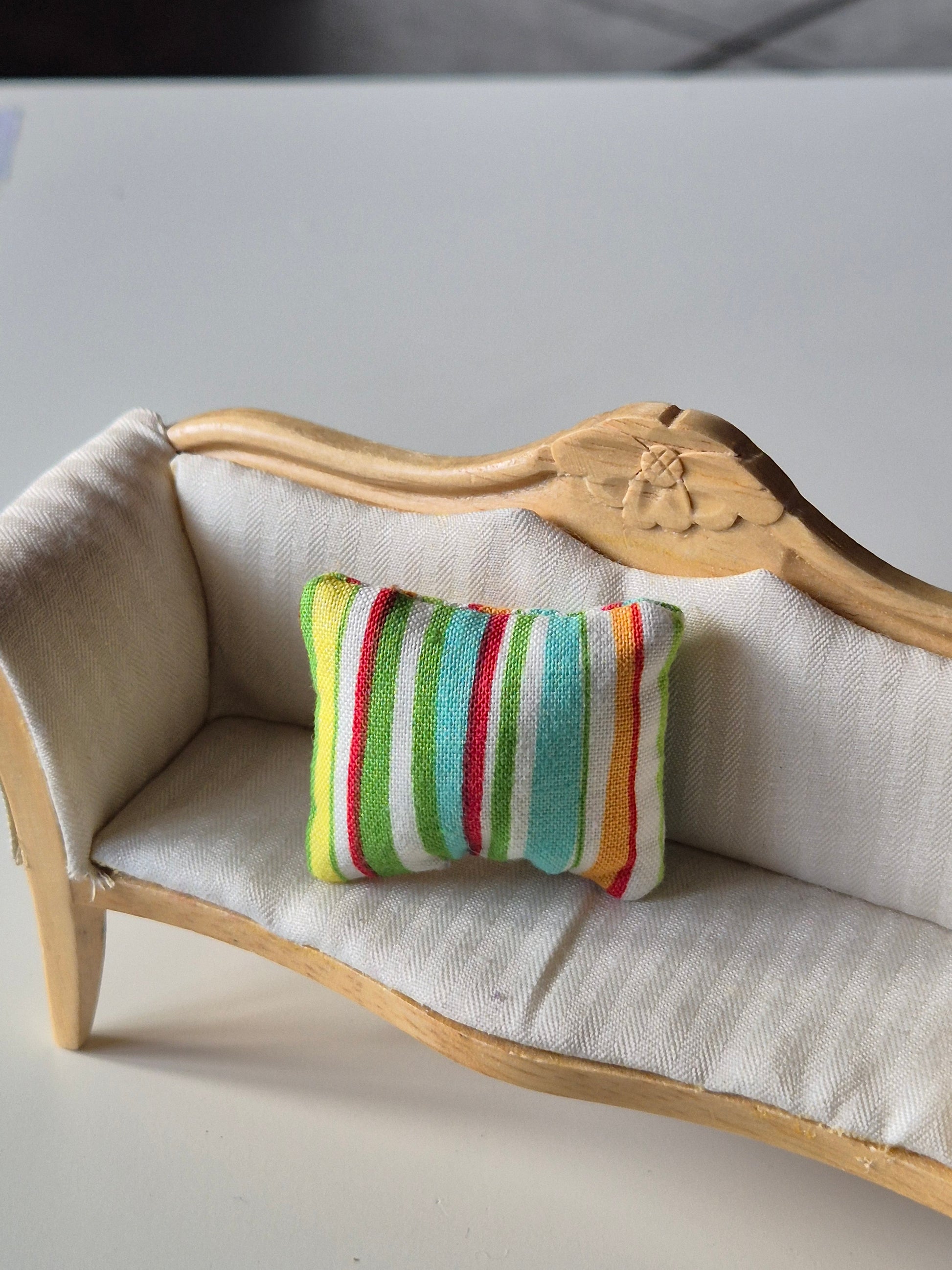 Fin stribet pyntepude. Hjemmelavet af privat miniature designer.