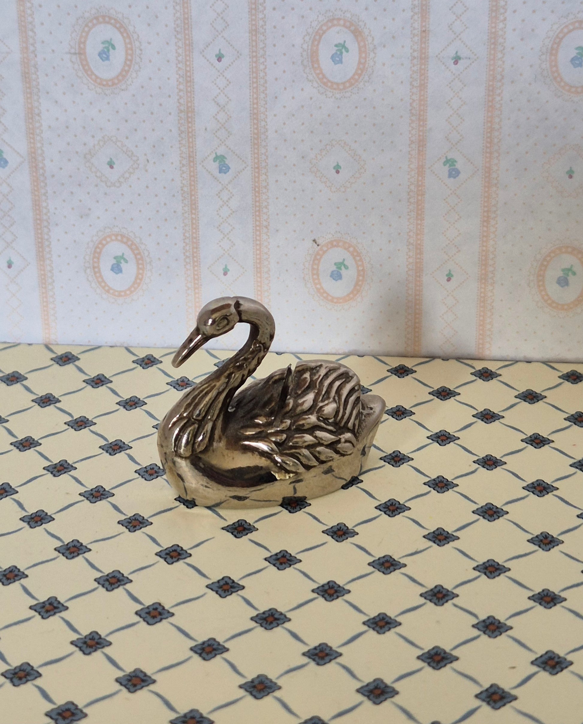 Svane figur. Den er ca 3,6 cm høj. Forholdsvis tung af miniature at være, da den er af metal. Pynte genstand.