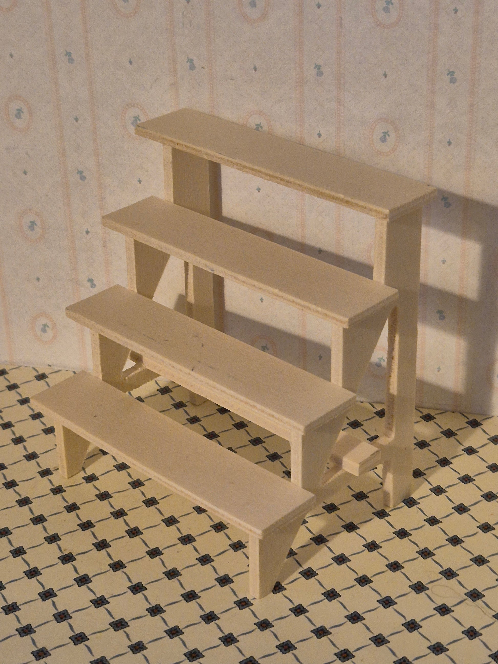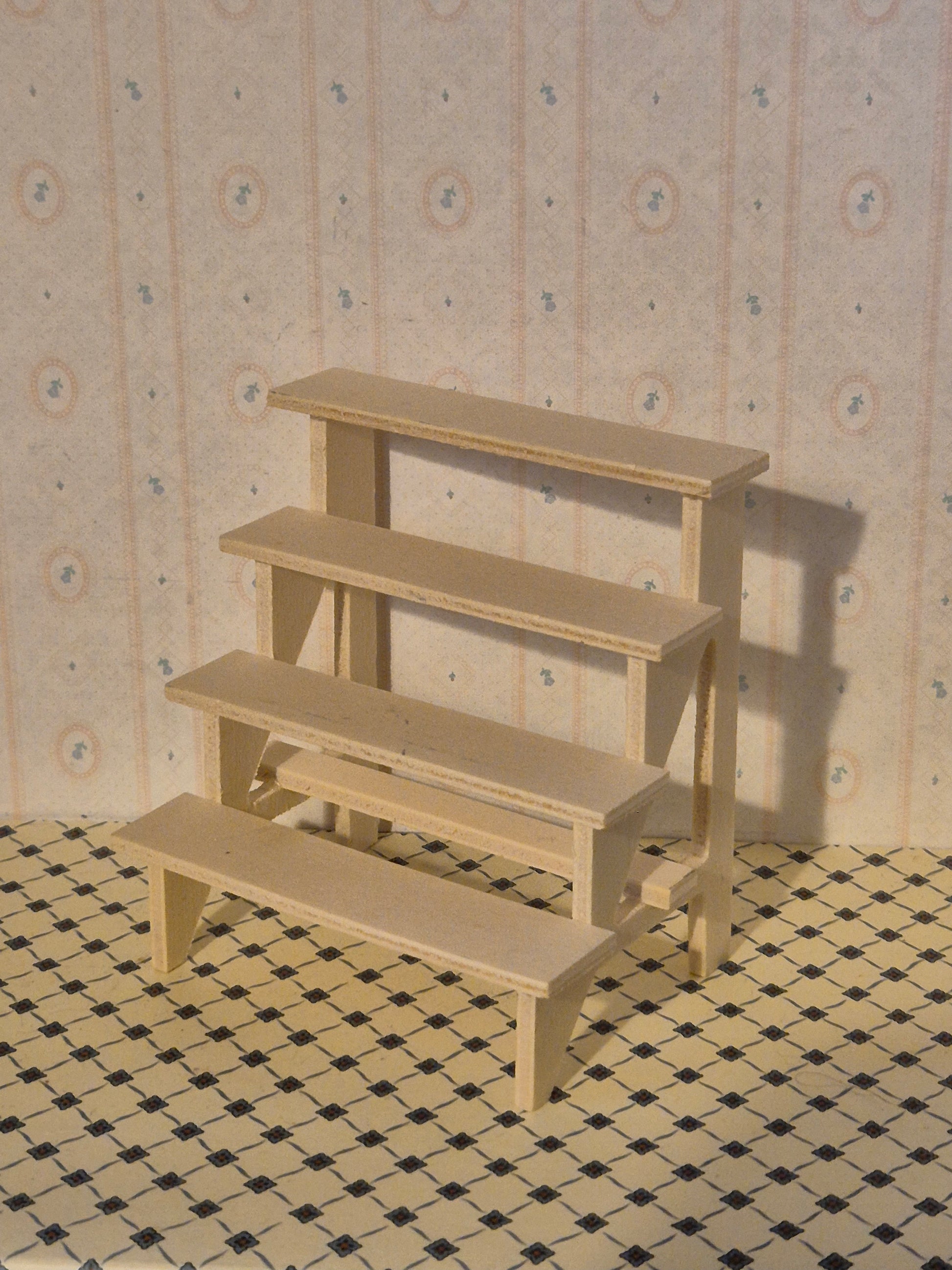 Trappe, der enten kan bruges som 1:12 trappe eller udstillingshylde. Udmærket stand. Lyst træ, der er ubehandlet.