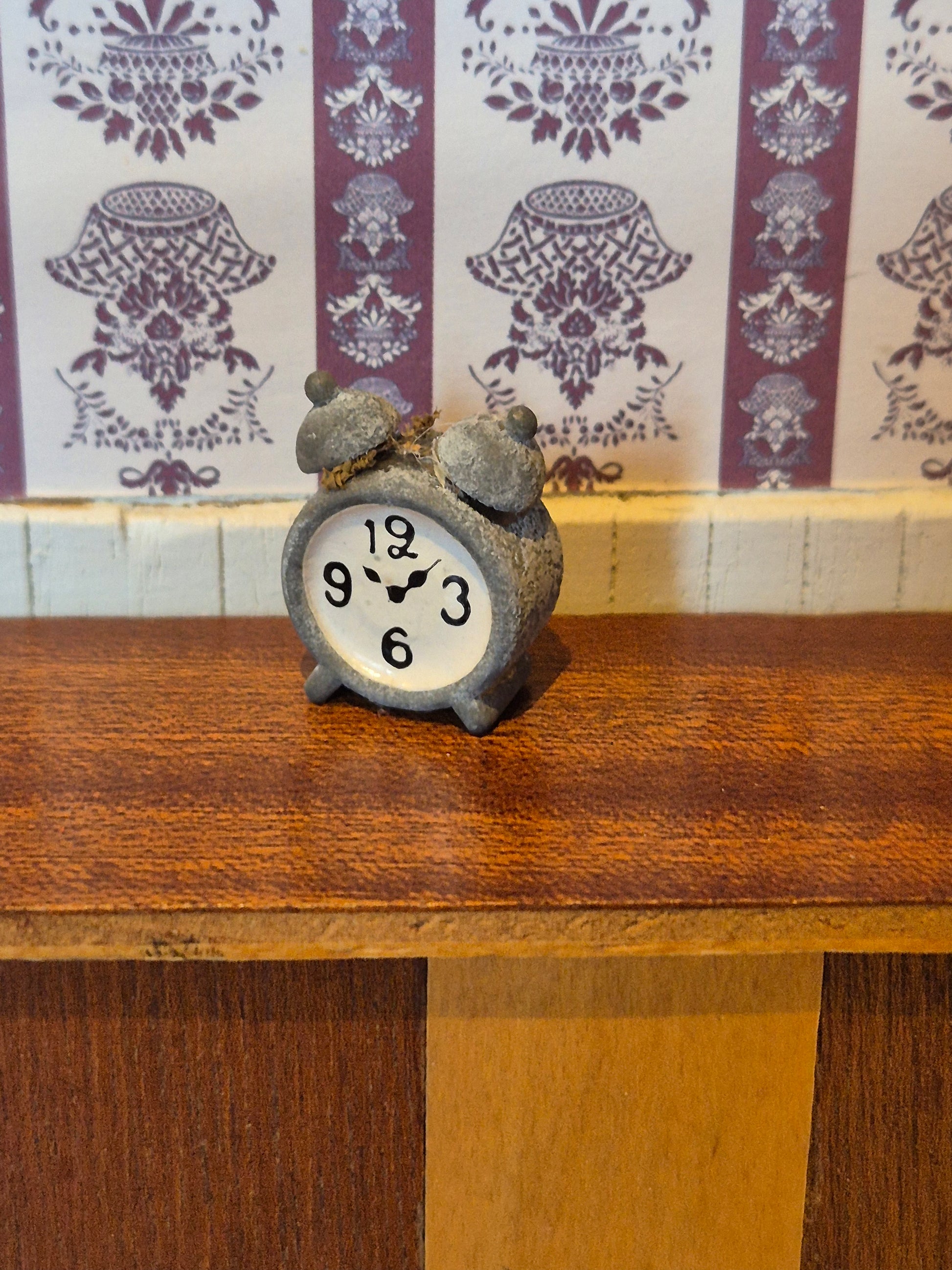 Metal vækkeur til dukkehuset, soveværelset. Det er et ældre vintage ting, tilbehør.