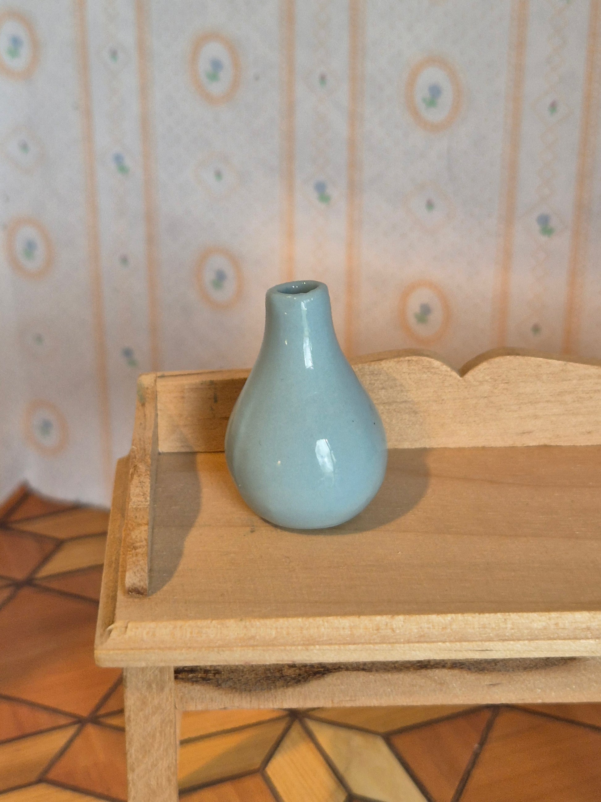 Fin turkisblå vase 1:12 eller gulvvase i 1:16. Den er pæn. Plast materiale.