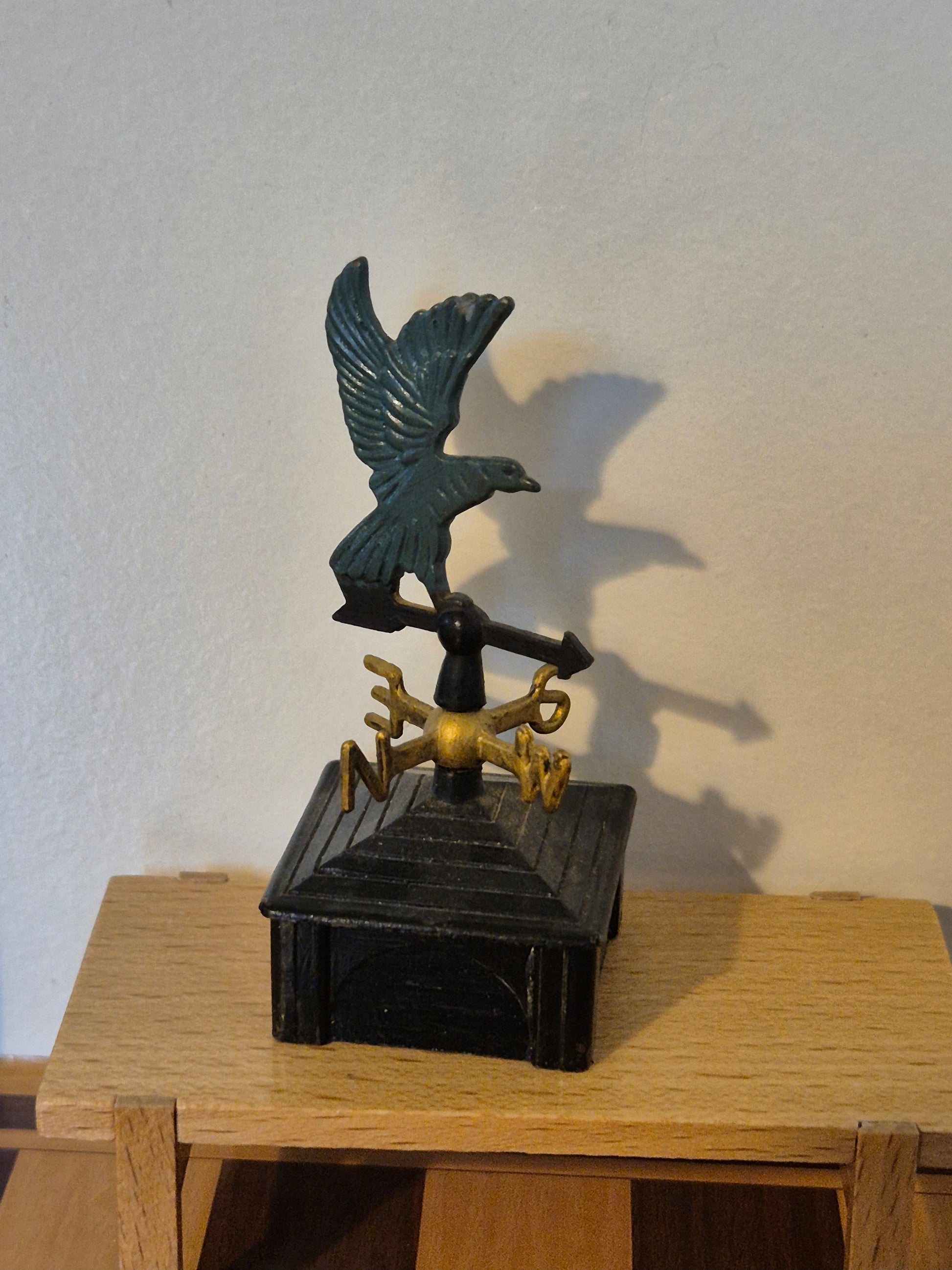 Vejrhane af metal i pæn stand til dukkehusets tag.