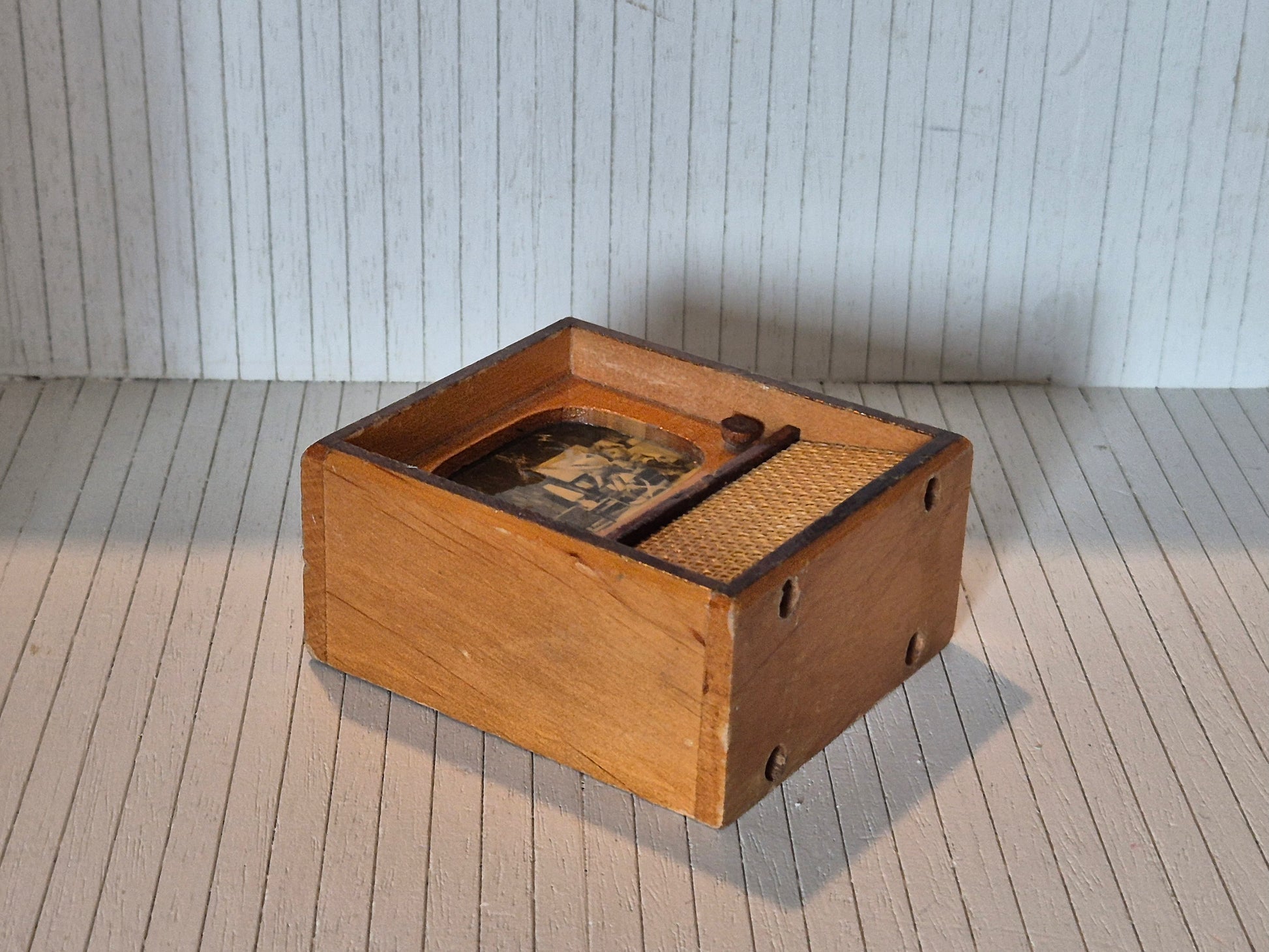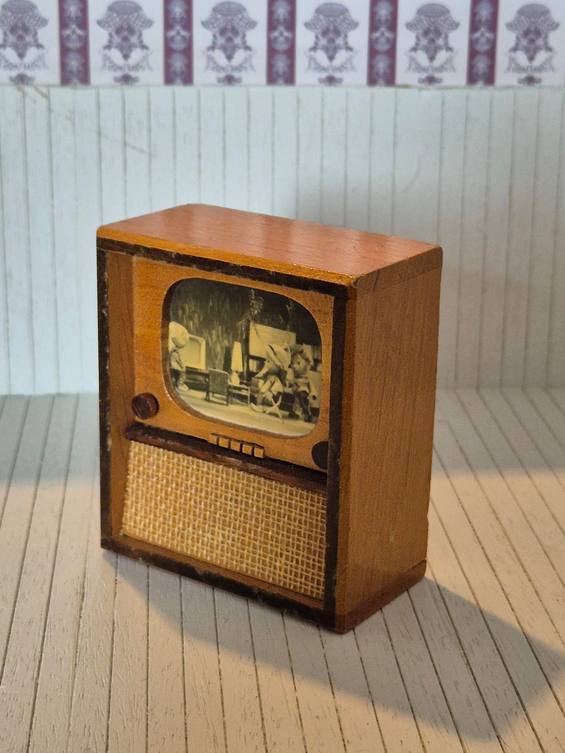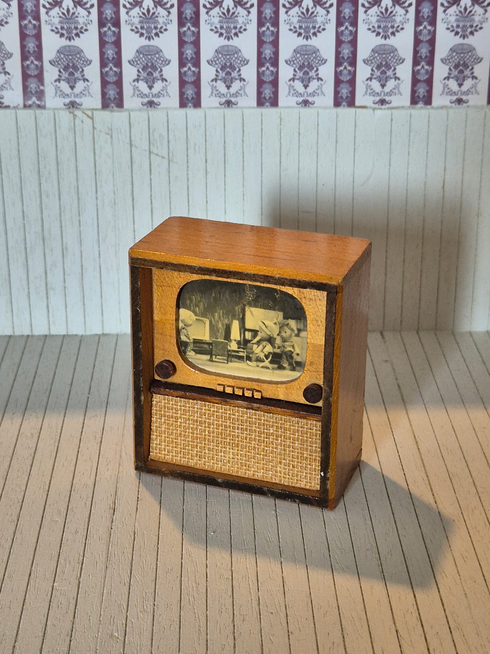 Vintage TV af træ fra før 1960erne. Det passer til 1:16 og 1:12.