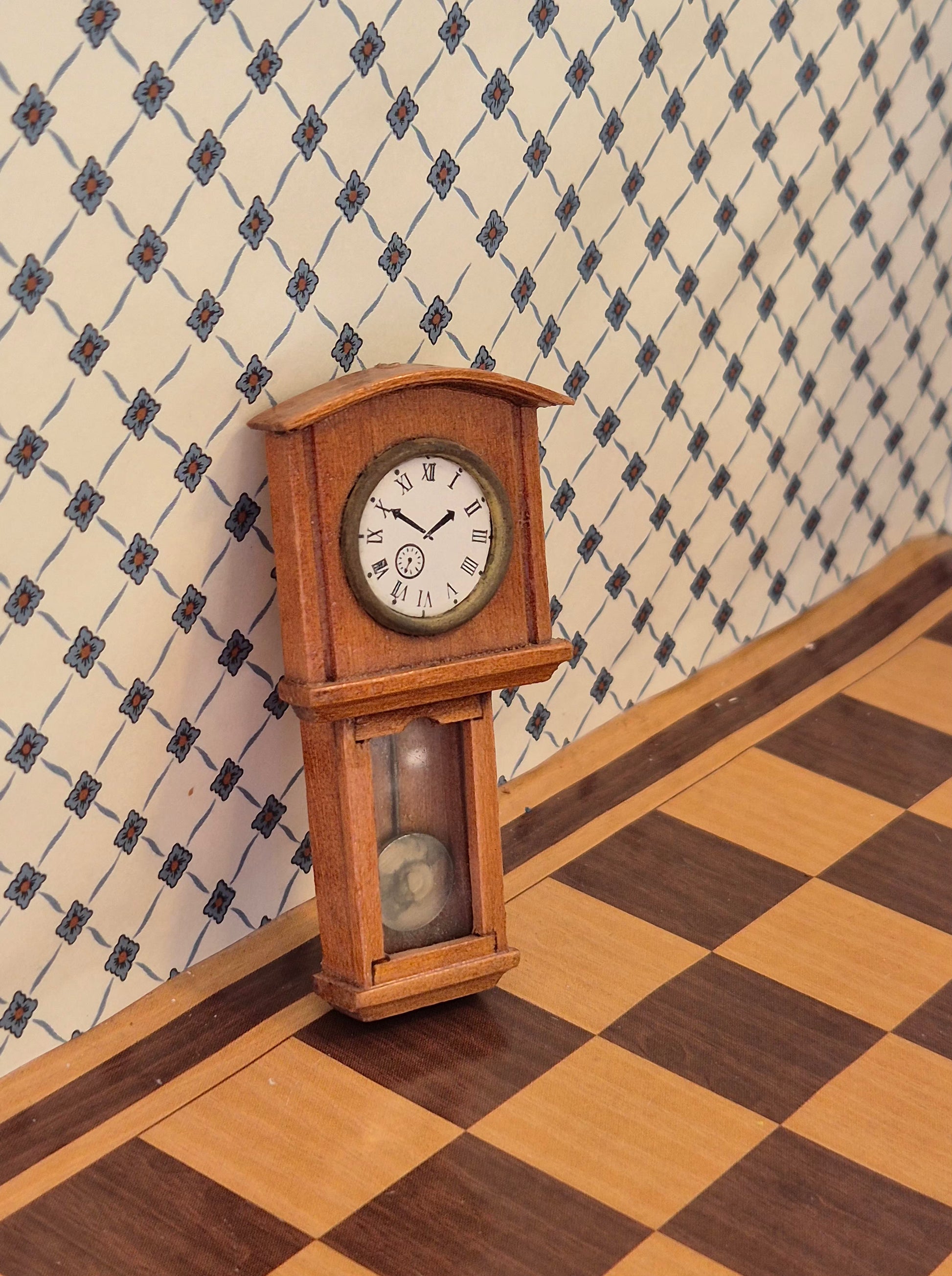 Pænt vintage 1:12 ur til ophæng på væggen i dukkehus. God stand