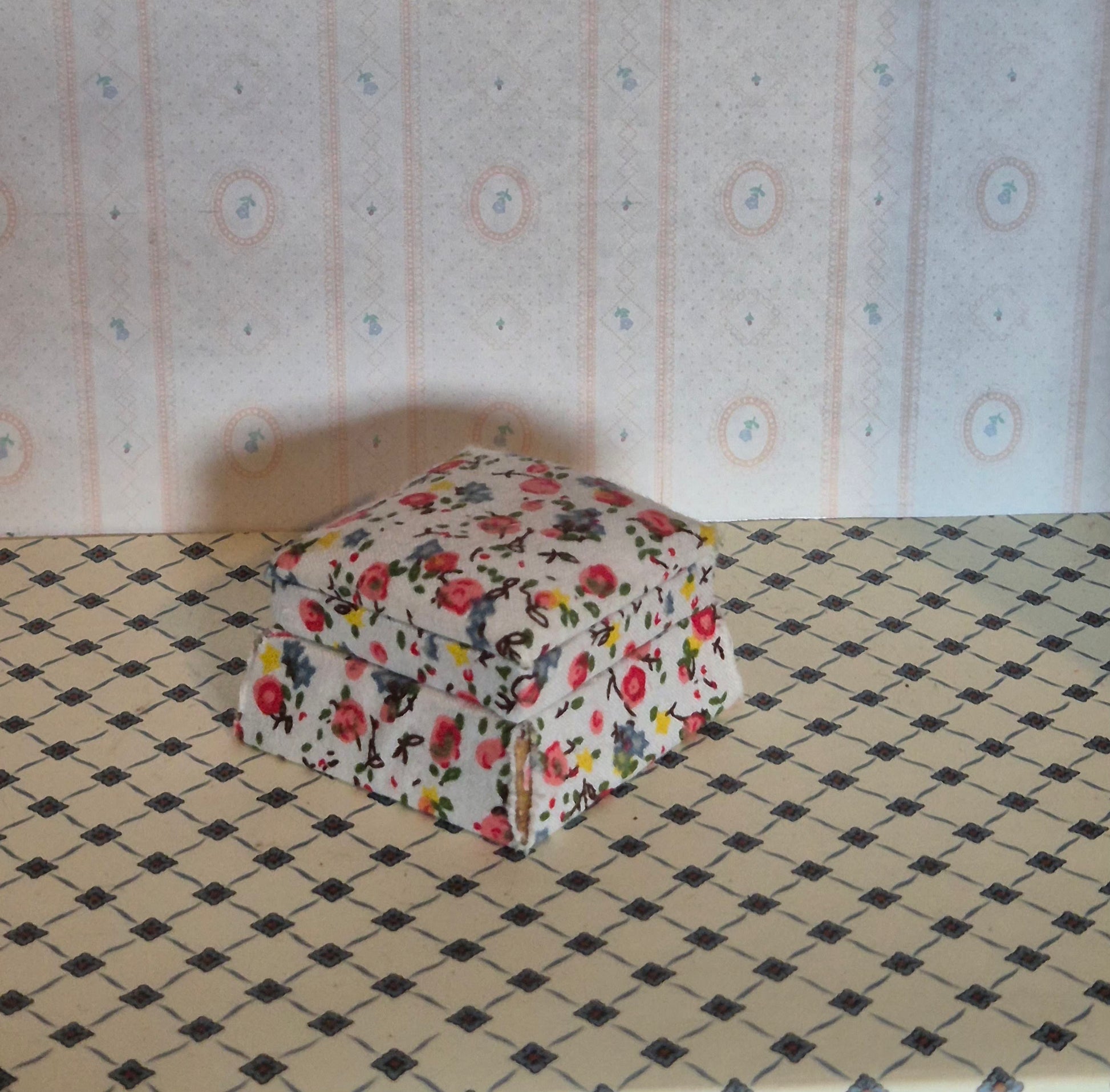 Fin kvadratisk blomstret fodskammel til 1:12.