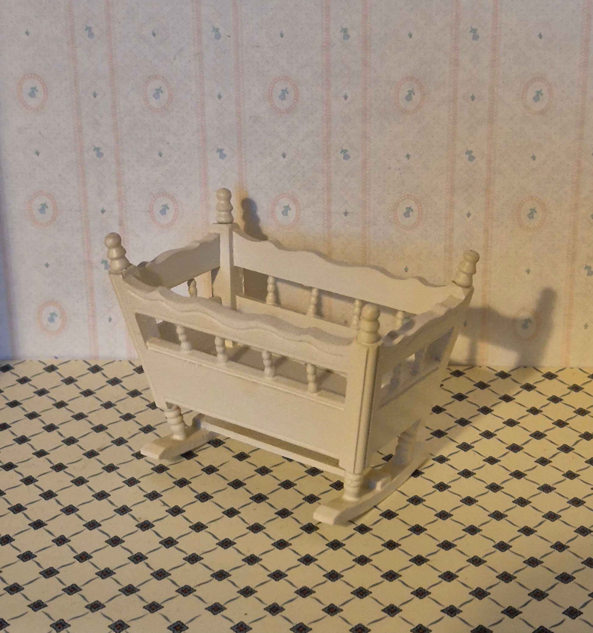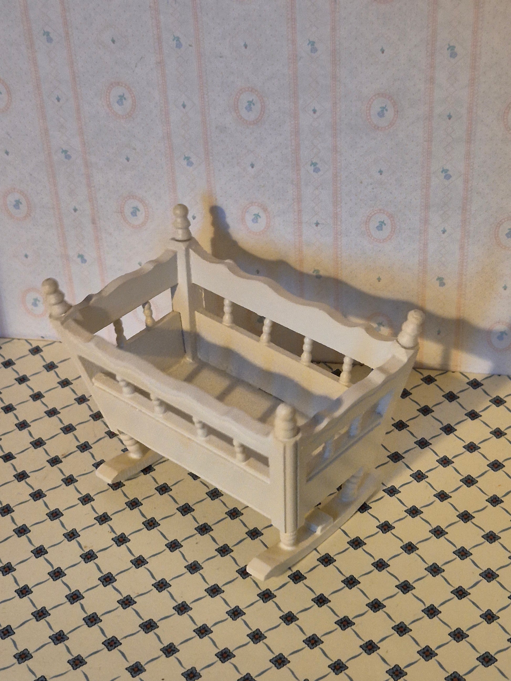 Pæn vugge, store model, i 1:12. Pæn stand. God børneseng.