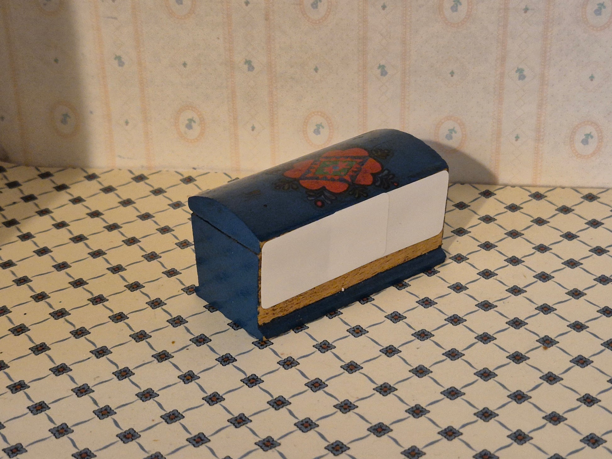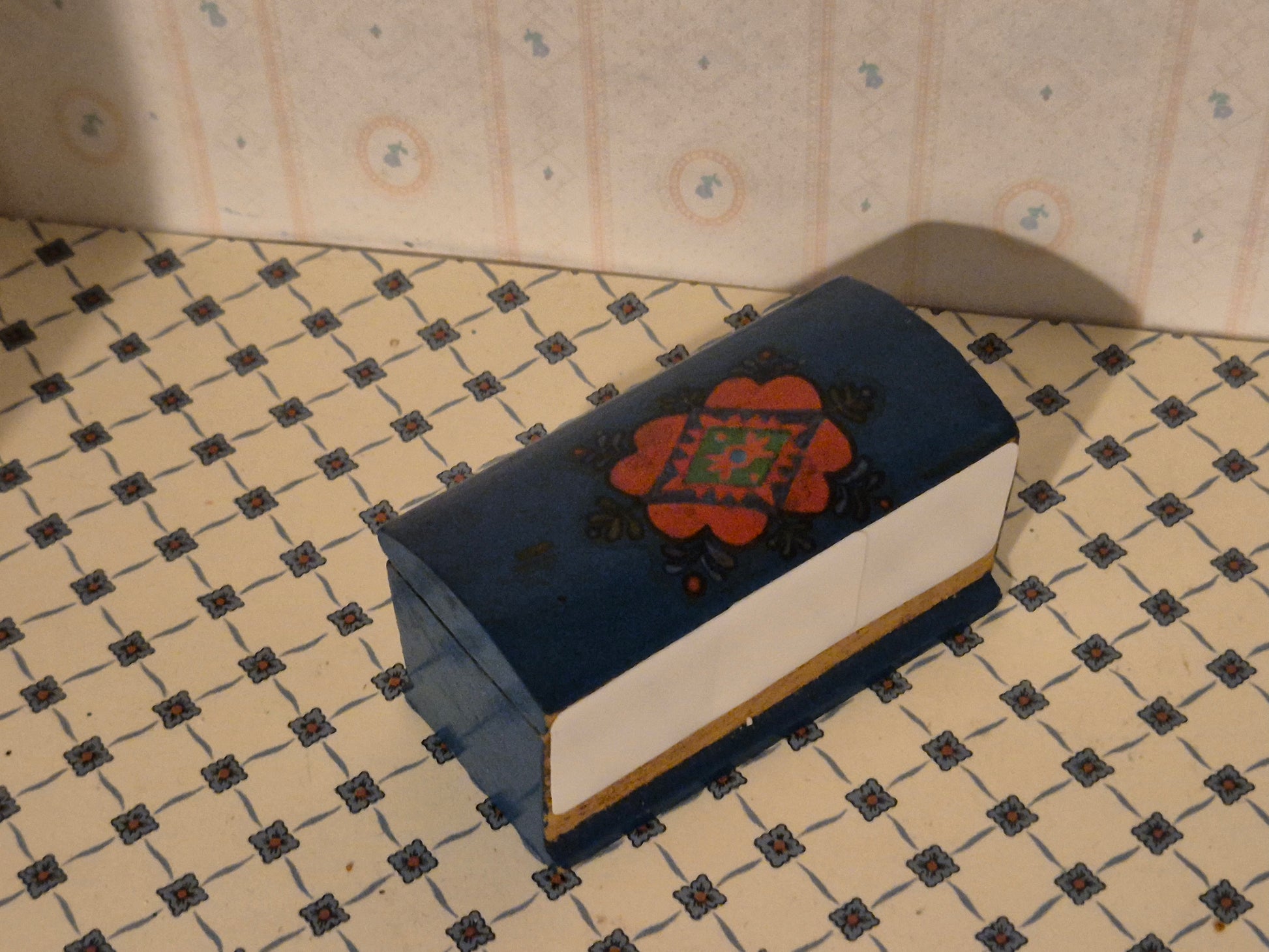 Vintage mørkeblå almue kiste af mærket Hanse af Skandinavien.