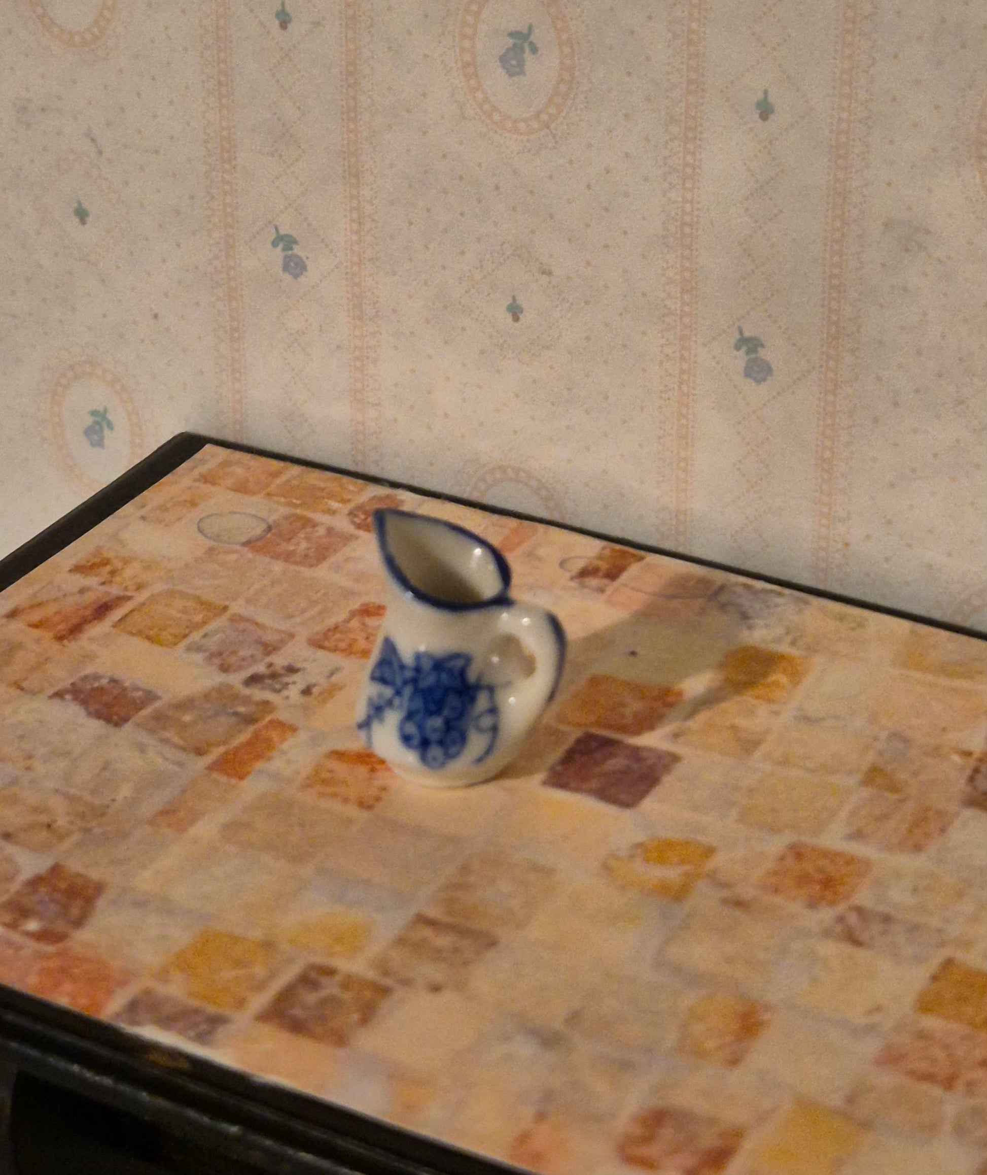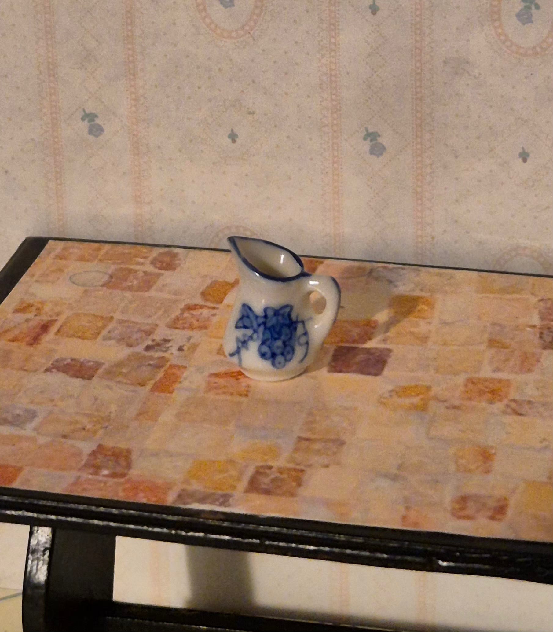 Kande af porcelæn. Fin med blåt mønster. Den er ca 1,4 cm høj.