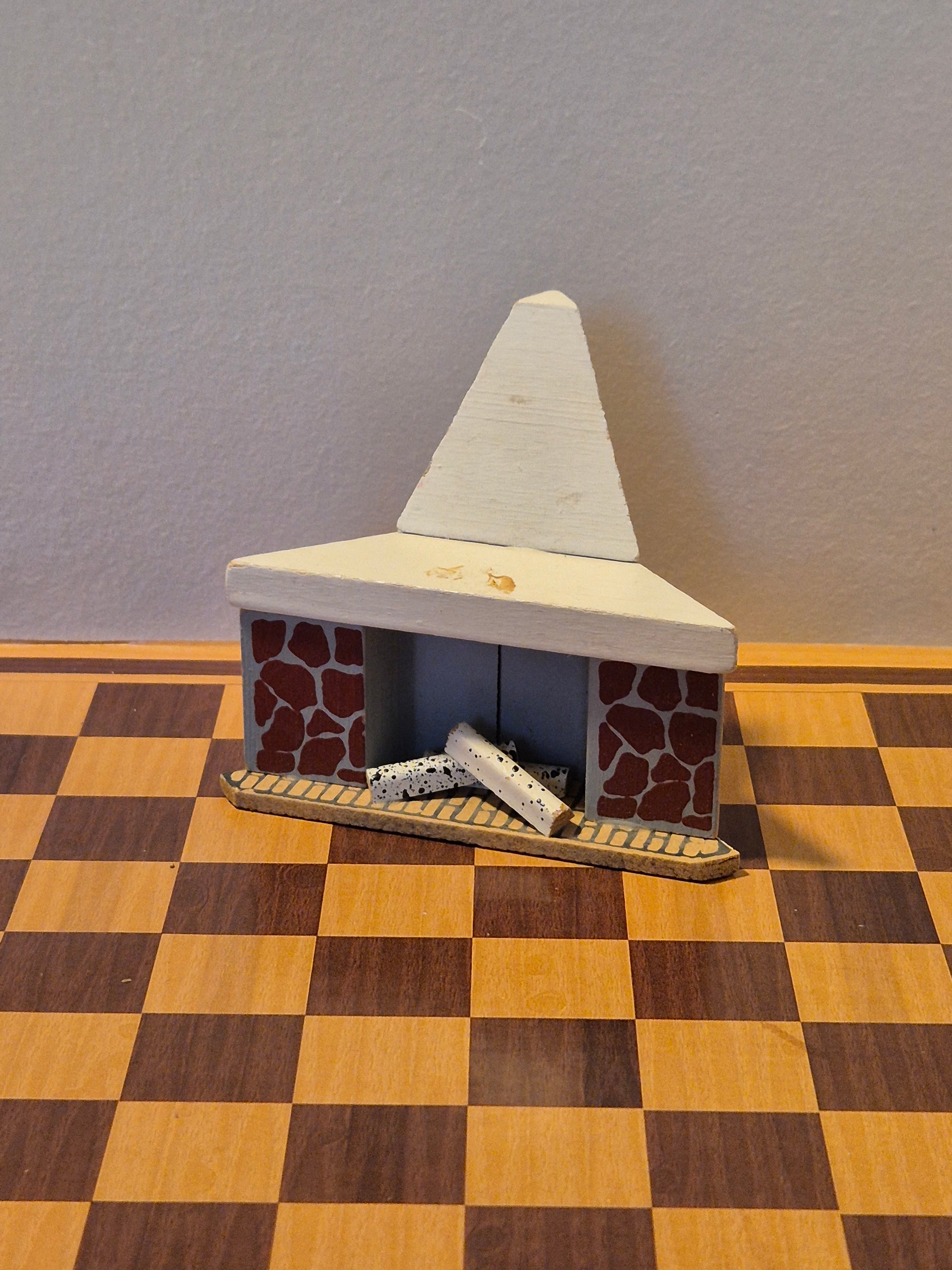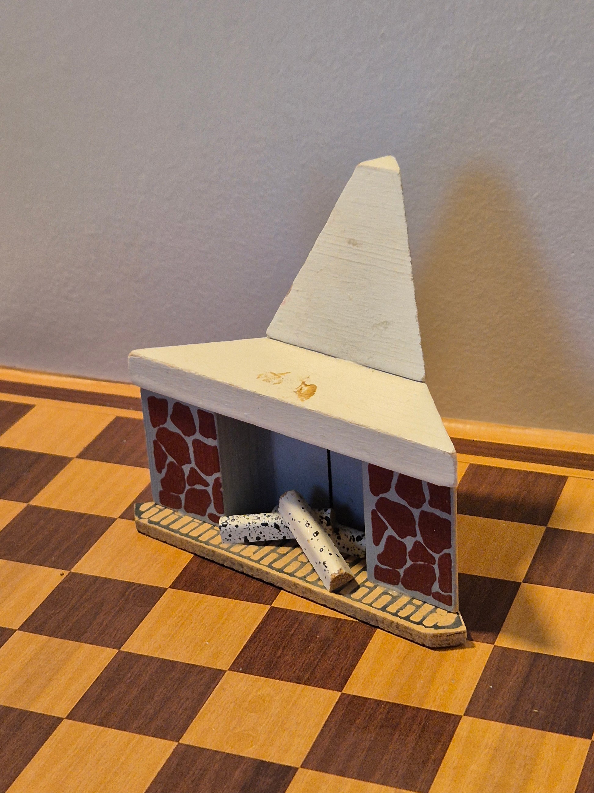 Lisa af Danmark hjørnepejs af træ i udmærket stand. Der er tegn af brug, pletter og patina