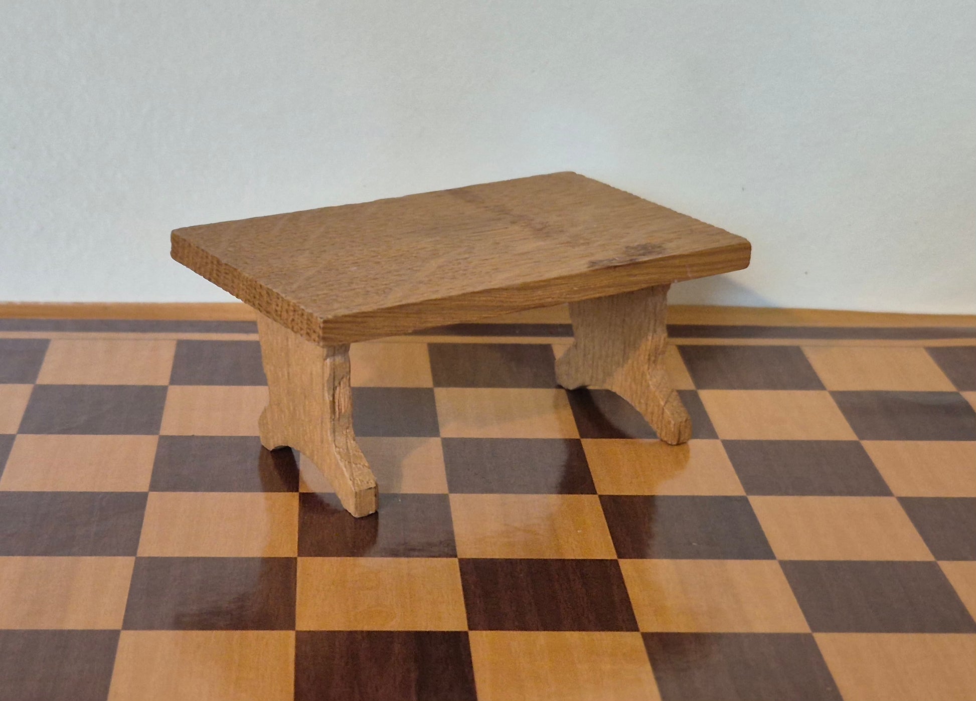 Vintage sofabord af Lisa af Danmark, hvor benet er blevet limet skævt på igen.