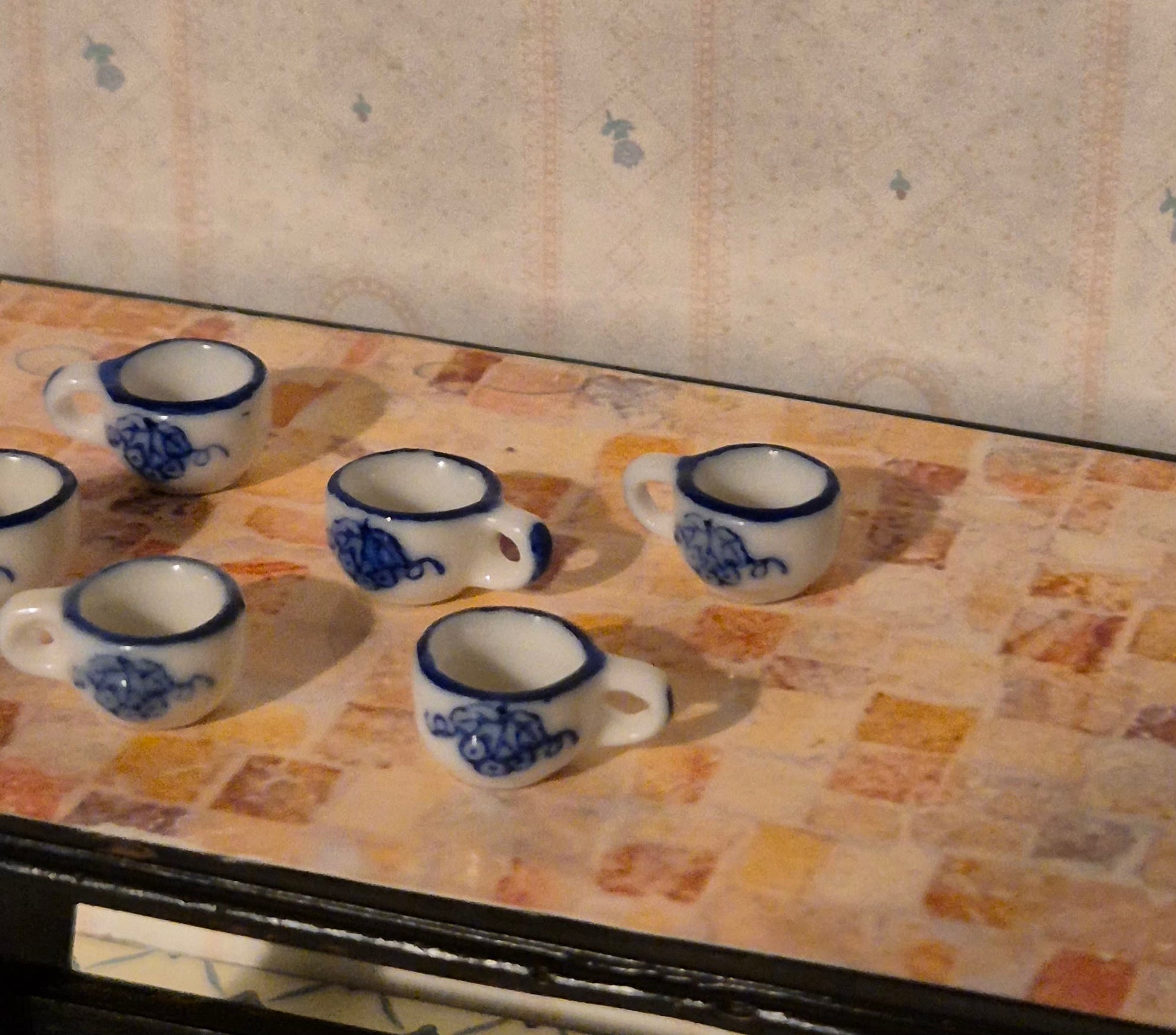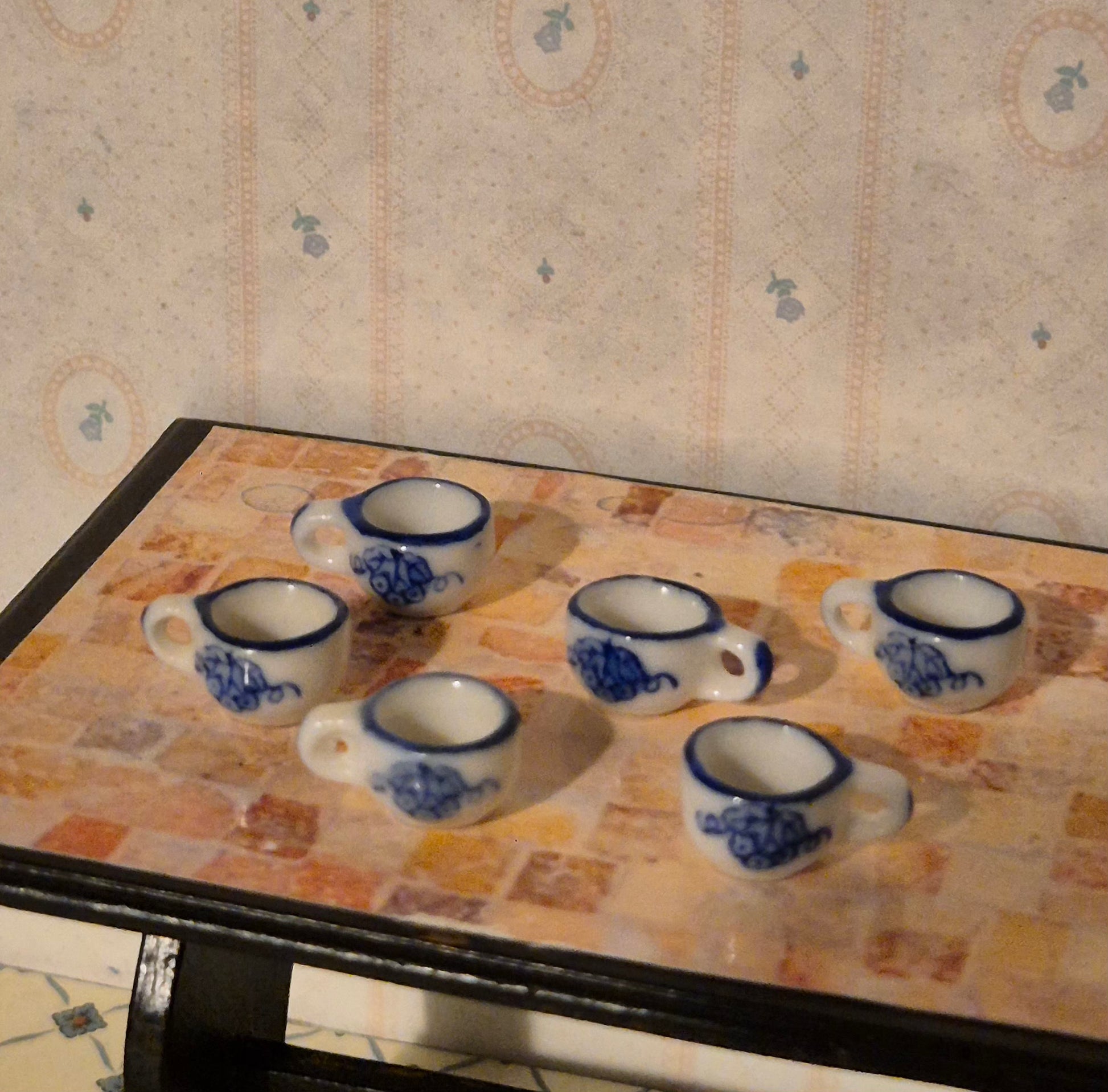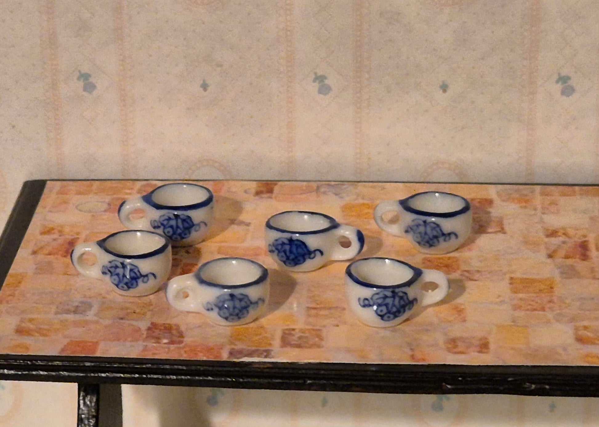 Pænt sæt med seks kobber. Det er porcelæns kopper. Passer bedst til 1:12.